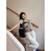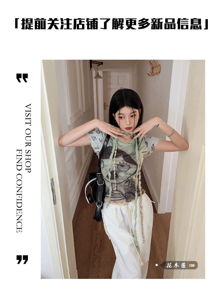 甘くてクールなプリントメッシュ半袖 T シャツの女性の 2023 夏の新しいスリムフィットと薄いオールマッチプルオーバートップイン 大人ガーリー スウィート キュート カジュアル サマー 夏物 Tシャツ 0921952203090450