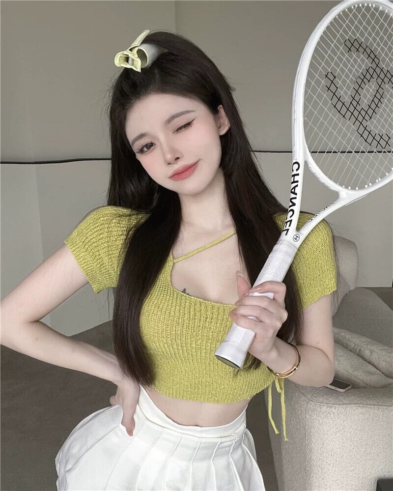 純粋な欲望スクエアカラーデザインセンス半袖ニットセーター女性の夏の 2023 新しい巾着ウエスト痩身ショートトップ サマー 夏物 スクウェア 0921941670855272