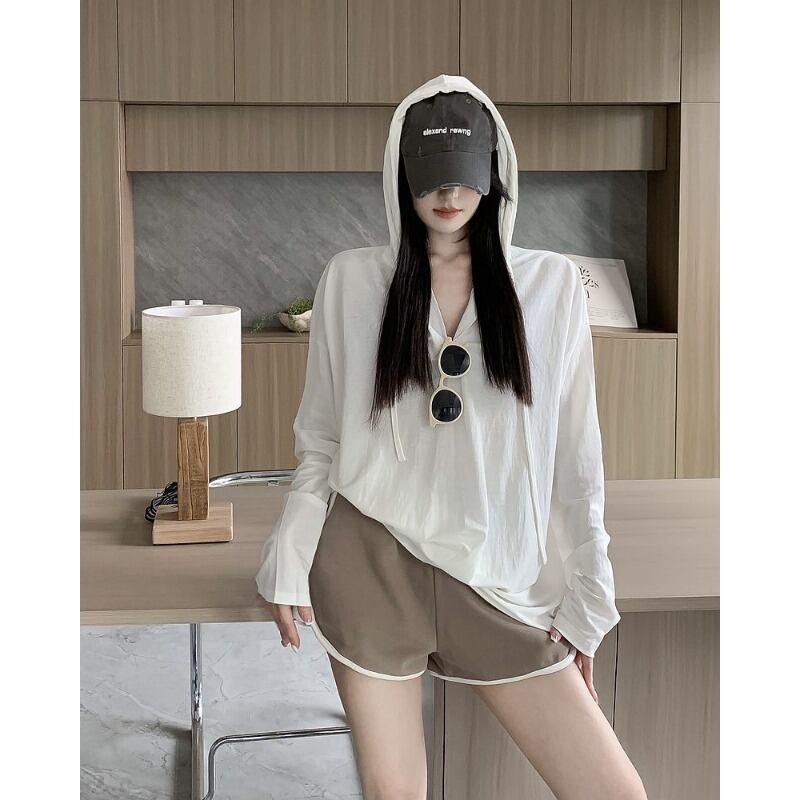 フード付き日焼け止め長袖フード付き T シャツレディース 2023 夏の新しいオールマッチミッドレングスのゆったりとした薄手のトップス ロング サマー 夏物 Tシャツ 0921980840505008