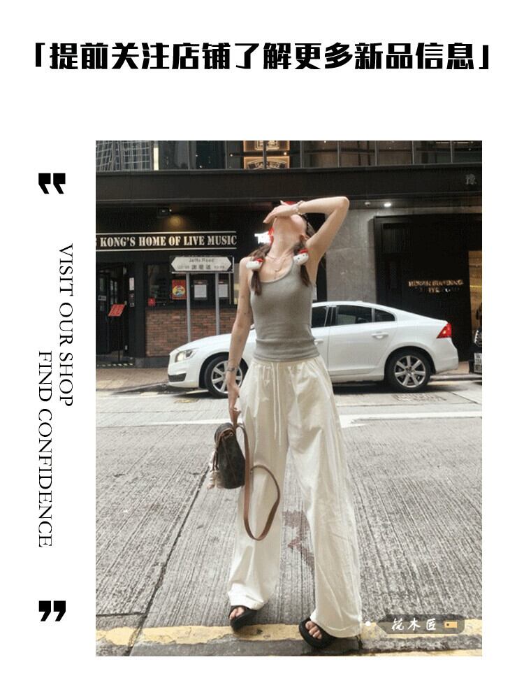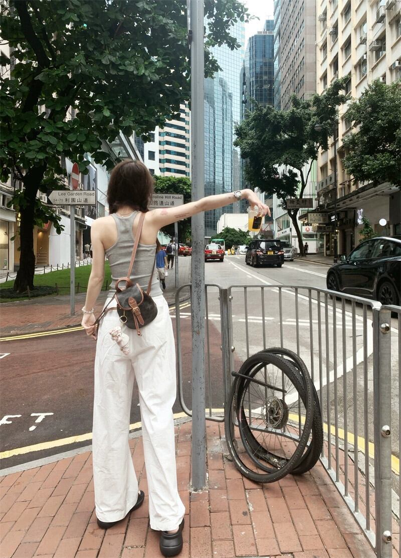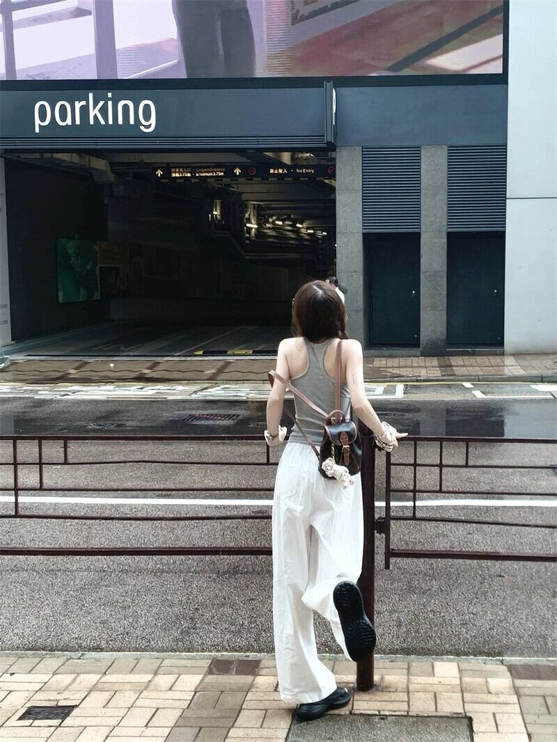 ファッションスーツ女性夏グレーベスト小さなサスペンダートップ白オーバーオールワイドレッグパンツ 2 点セット ホワイト サマー 夏物 0921930116416692