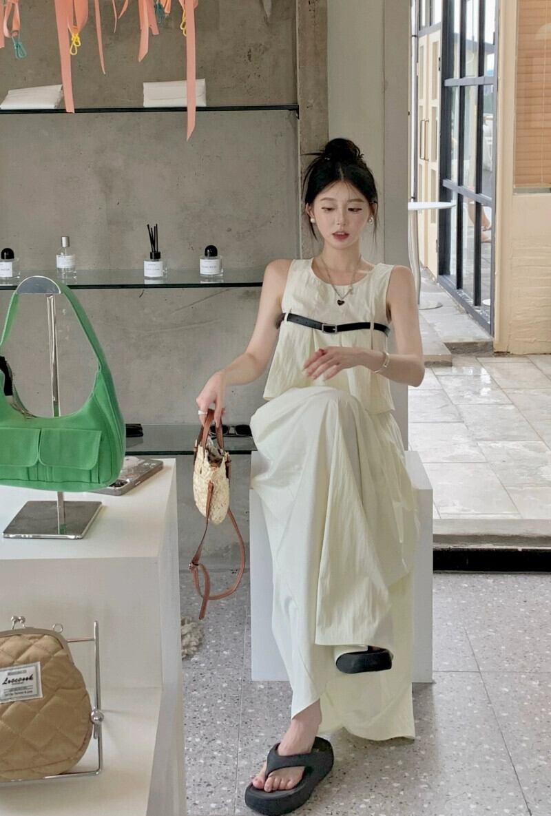 デザインセンスニッチスーツ女性 2023 夏の新しいプリーツノースリーブベストハイウエストスカート 2 点セット ハイウェスト サマー 夏物 0921978240589463