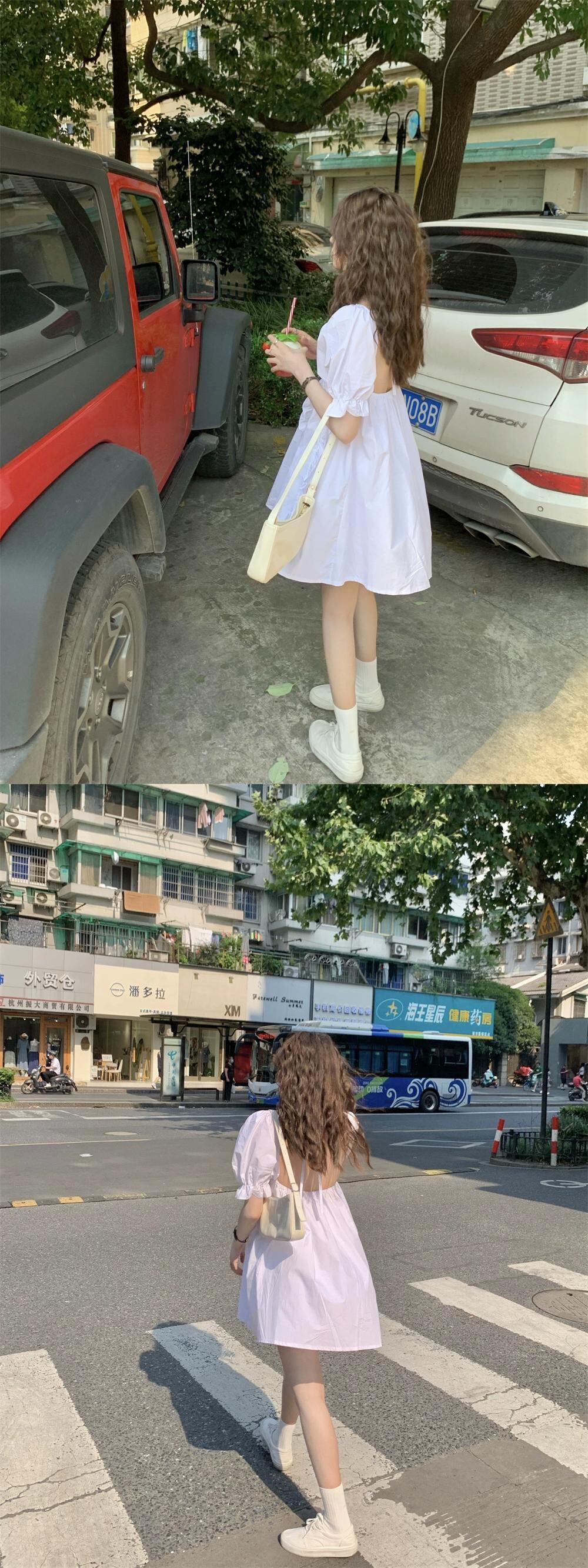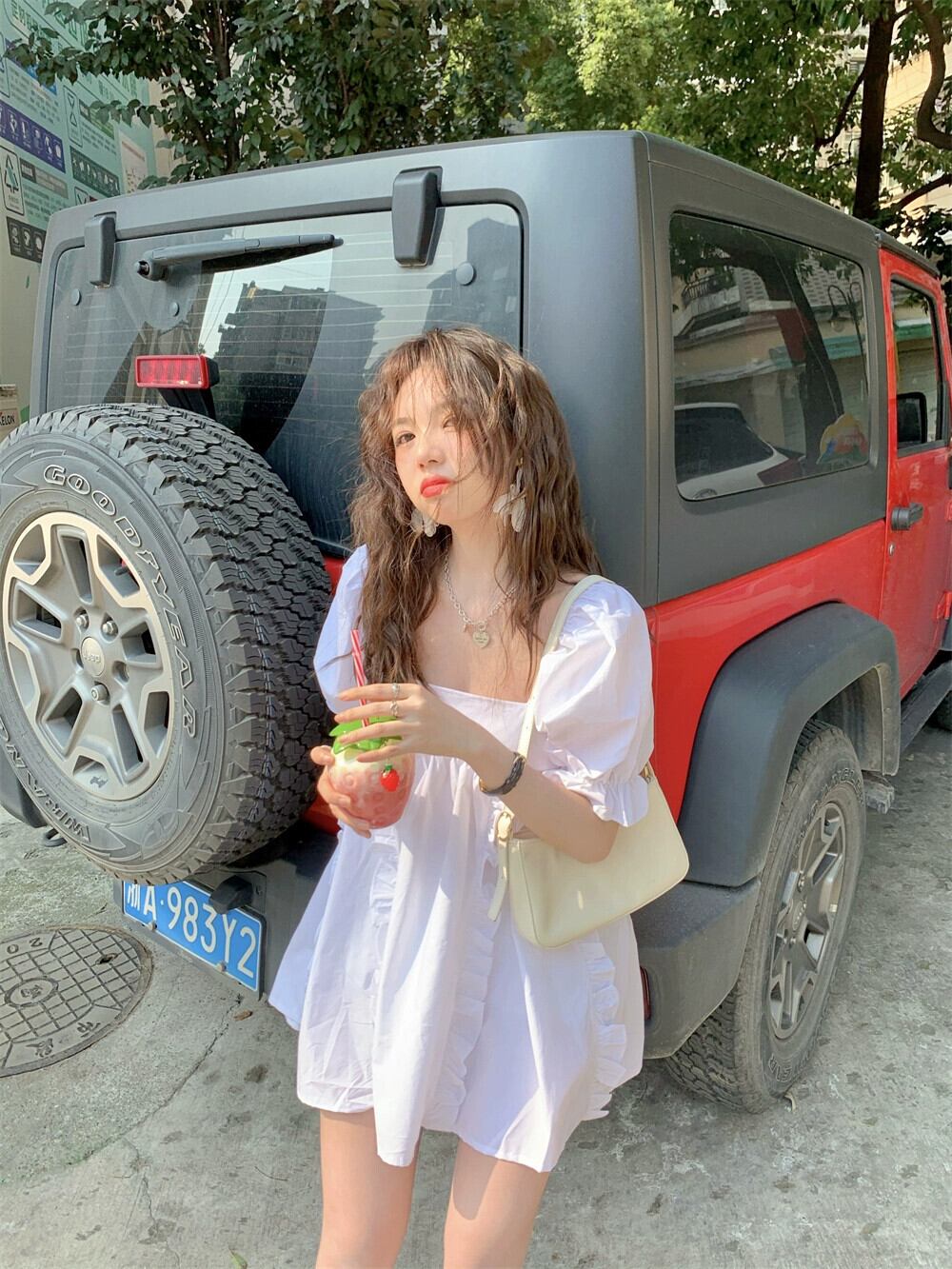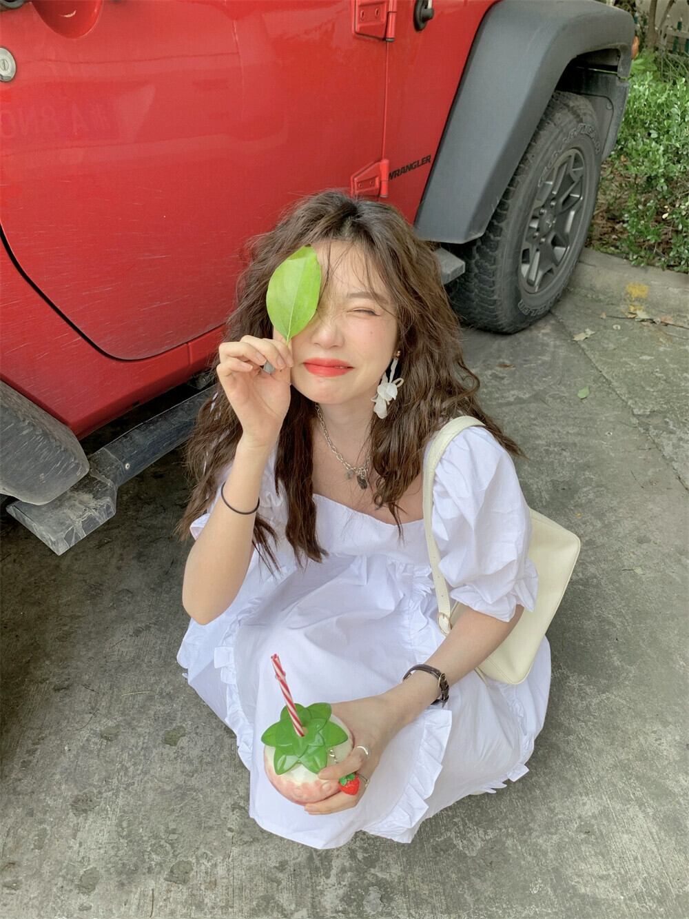フレンチスクエアカラー半袖ドレスレディース夏ハイエンドパフスリーブ初恋スカート木耳サイドaラインショートスカート サマー 夏物 スクウェア 0921952634774338