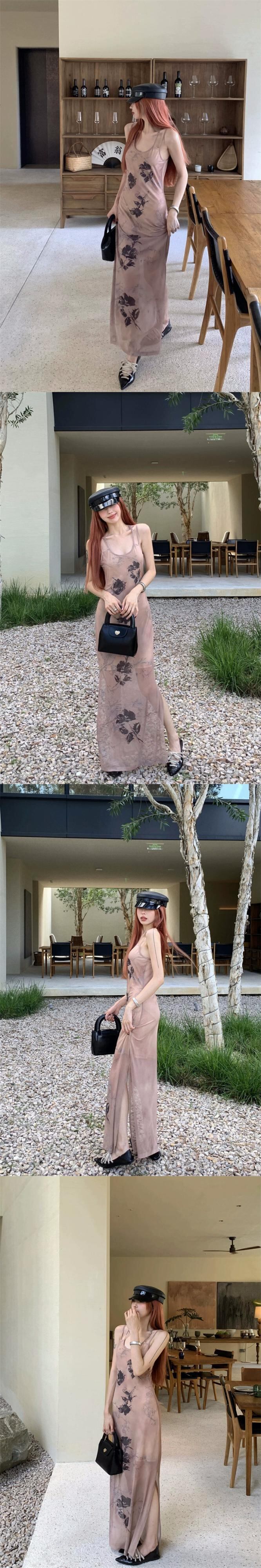 中国風スリングメッシュプリントドレス女性の夏 2023 新しいレトロニッチウエスト痩身スカート サマー 夏物 0921973353661139