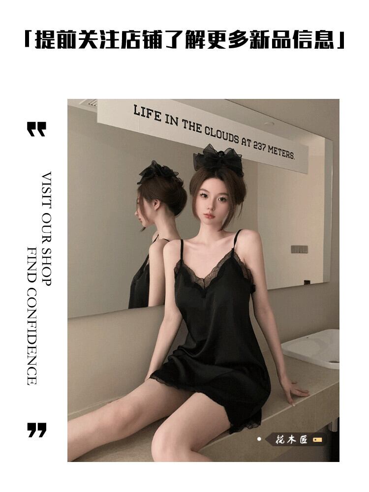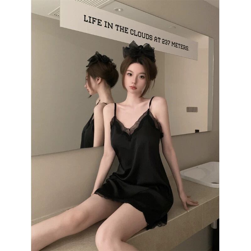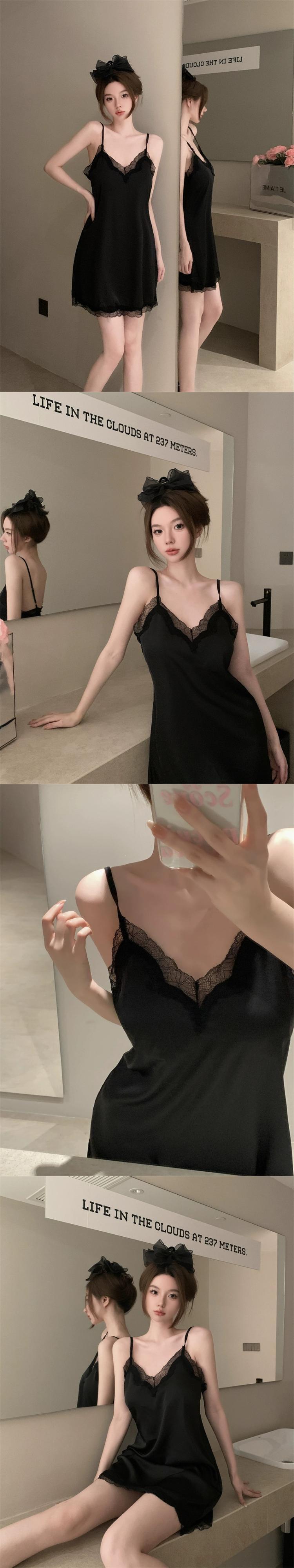 セクシーなレース V ネックスリングアイスシルク寝間着胸パッド女性の夏の純粋な欲望ルーススリムドレススカート サマー 夏物 Vネック ピュア 0921920494797390