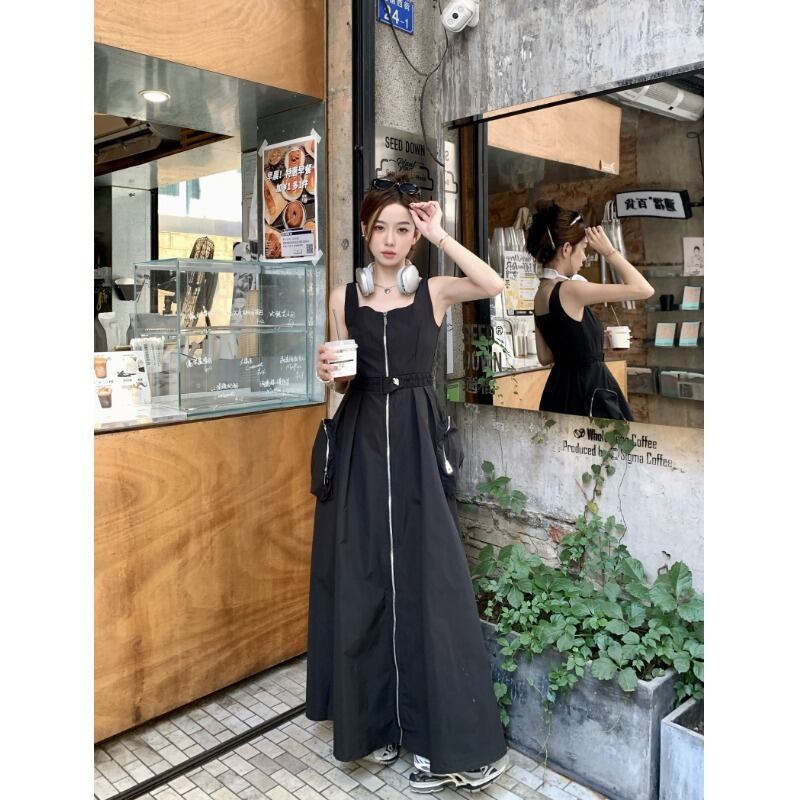 ニッチデザインセンススタイルサスペンダードレス女性の夏 2023 新しい重工業ジッパーウエスト痩身ドレス サマー 夏物 0921992062741708