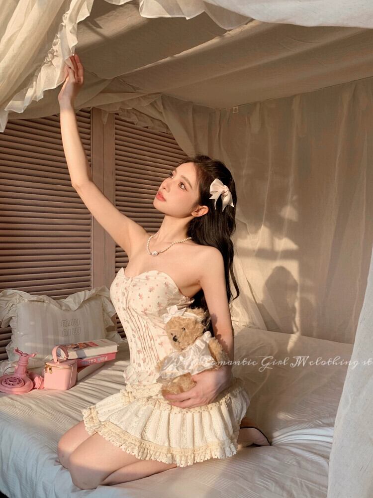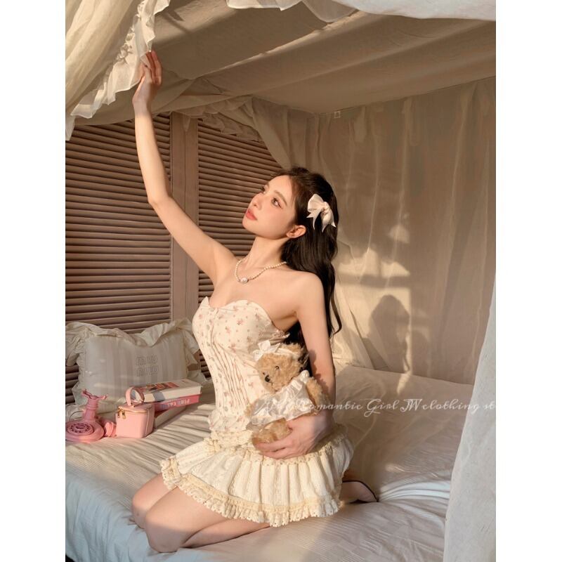 純粋な欲望っぽいスタイルレースステッチチューブトップドレス女性の夏の 2023 新しい痩身スリムケーキショートスカート サマー 夏物 092194512821864