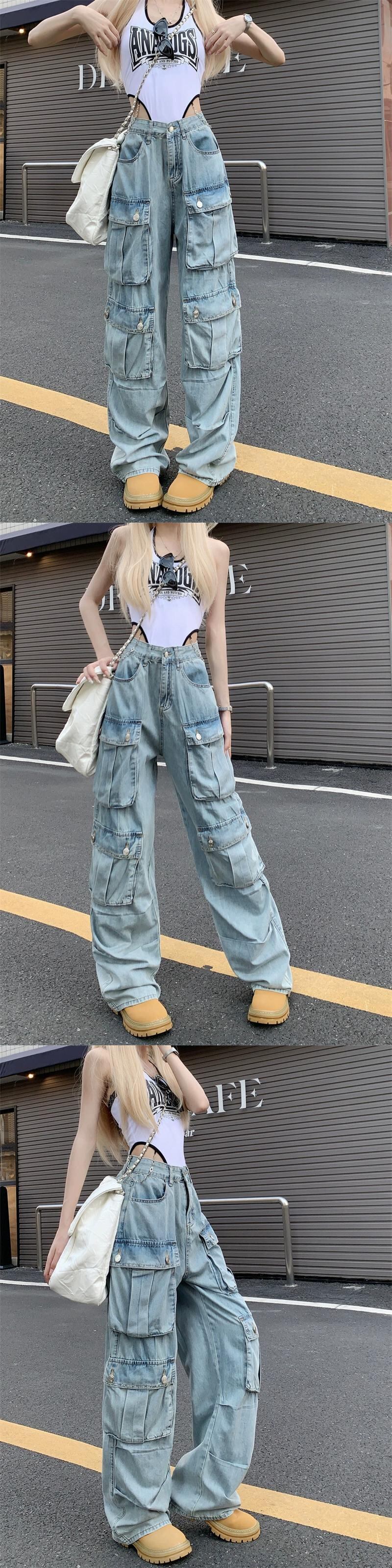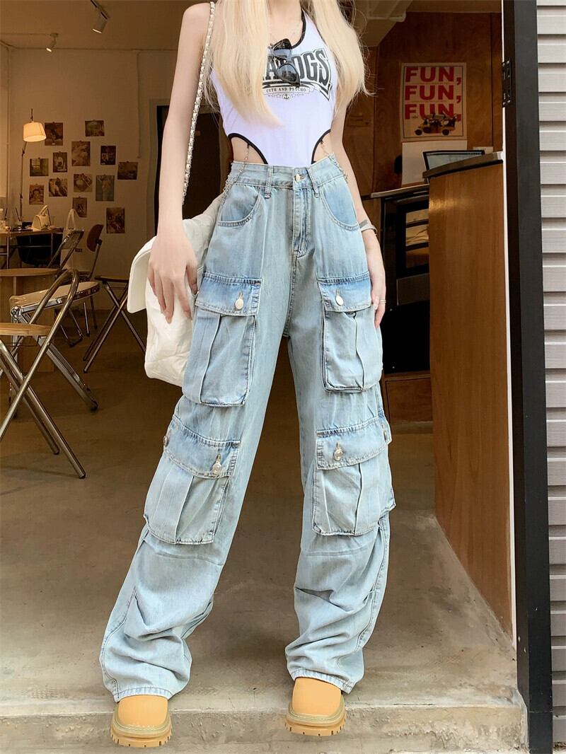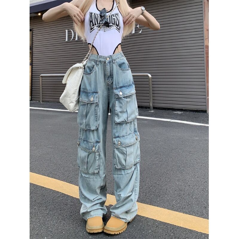 センスハイウエスト薄型ジーンズレディース 2023 夏の新しいオールマッチカジュアルルーズワイドレッグオーバーオール ハイウェスト サマー 夏物 092198515274140