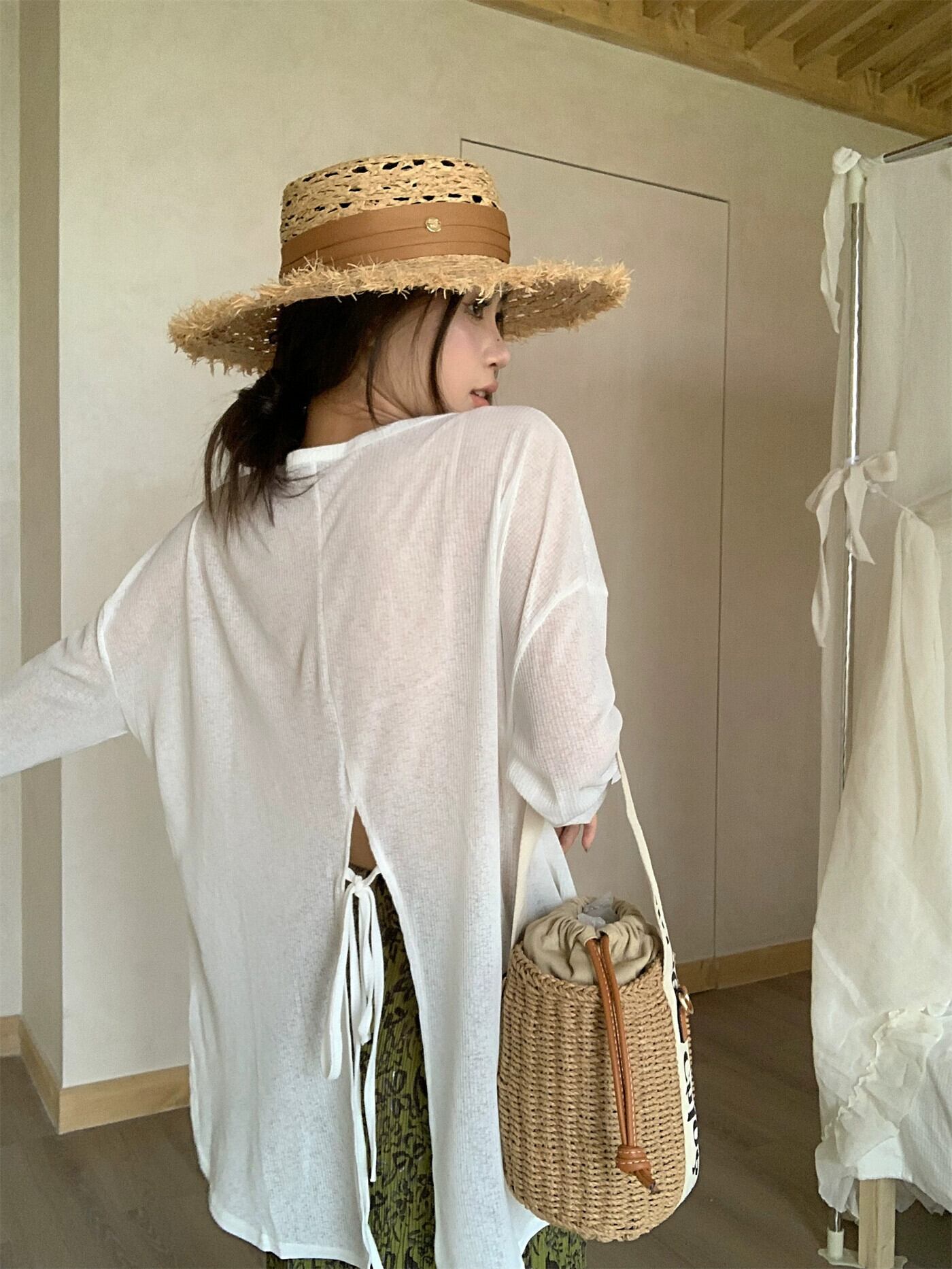 センスバックストラップ日焼け止め長袖 Tシャツレディース 2023 夏の新しいオールマッチルーズで薄いカーディガントップ ロング サマー 夏物 0921919051578997