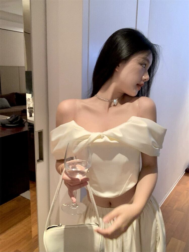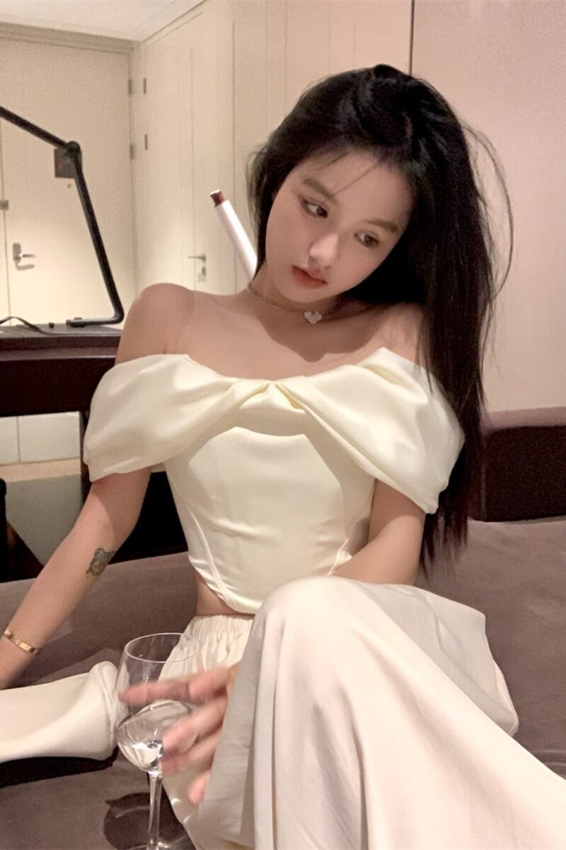 フランスの高級フィッシュボーン ワンショルダー シャツ女性の 2023 夏の新しい純粋な欲望のストラップレス ショート トップ サマー 夏物 ピュア 0921929120773434
