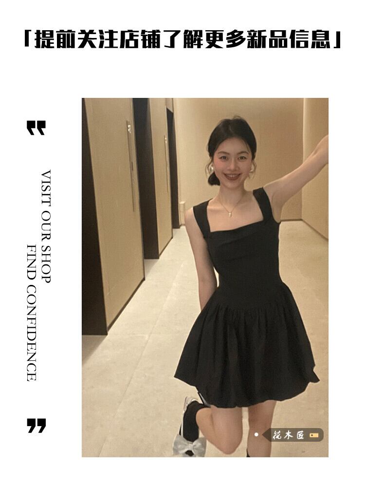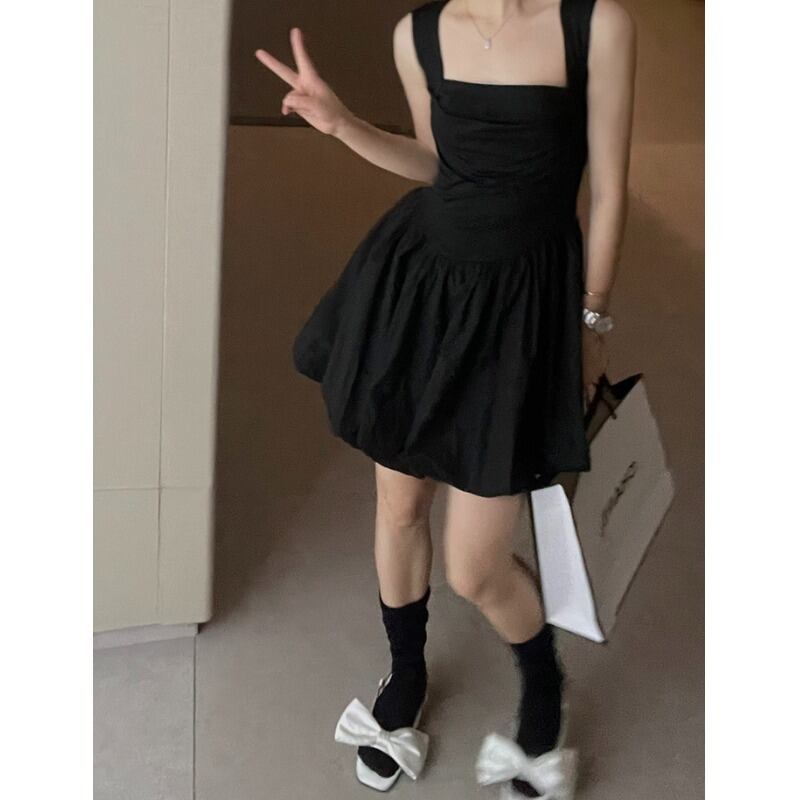 気質シックなエレガントなサスペンダードレス女性の夏の 2023 新しいファッションレトロウエスト痩身黒スカート ブラック サマー 夏物 0921974497417414