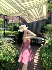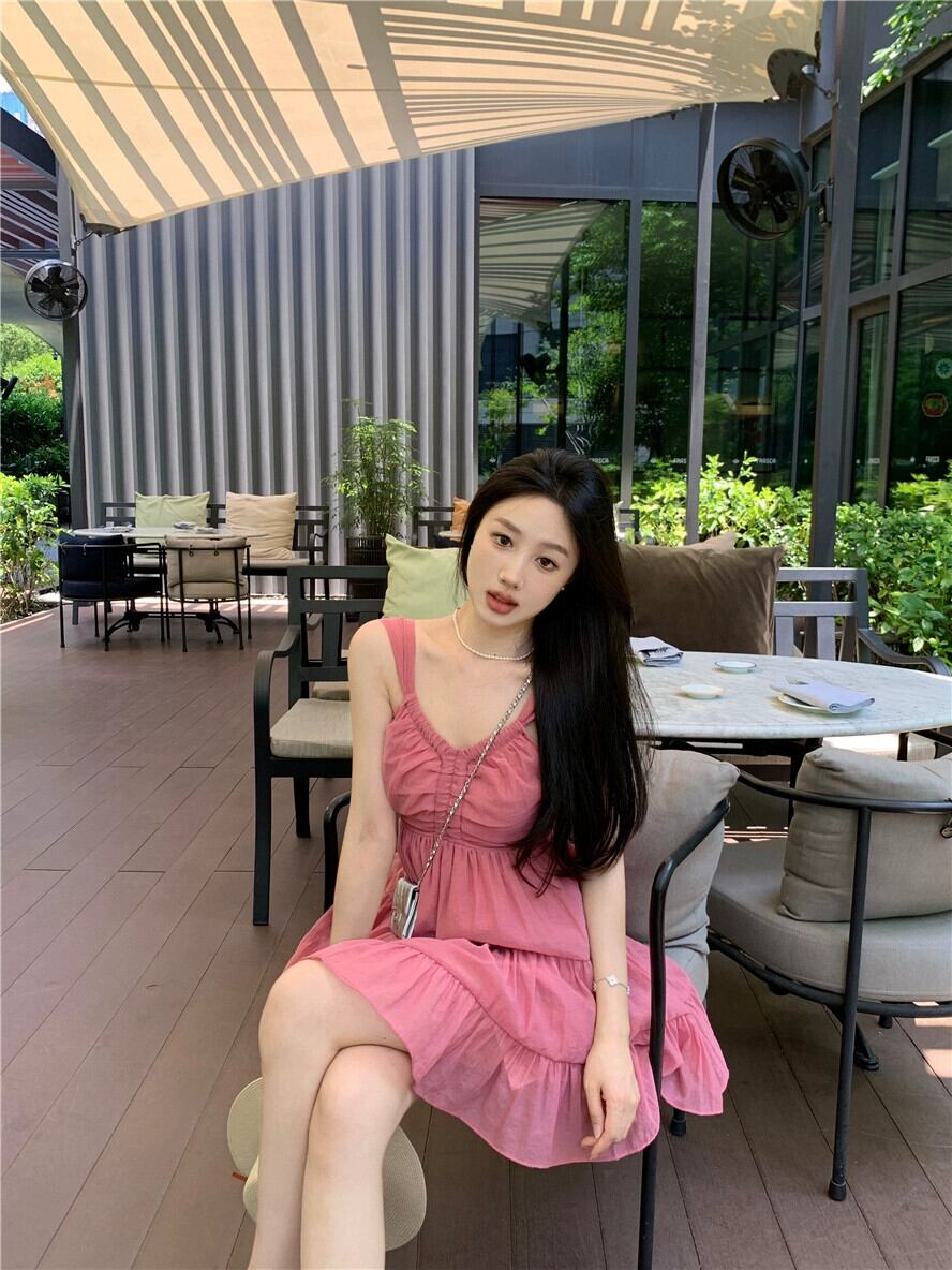 ホリデースタイルバックレスストラップサスペンダードレス女性の夏の2023新しい優しい風ピンクウエスト痩身ドレス サマー 夏物 0921951179240839