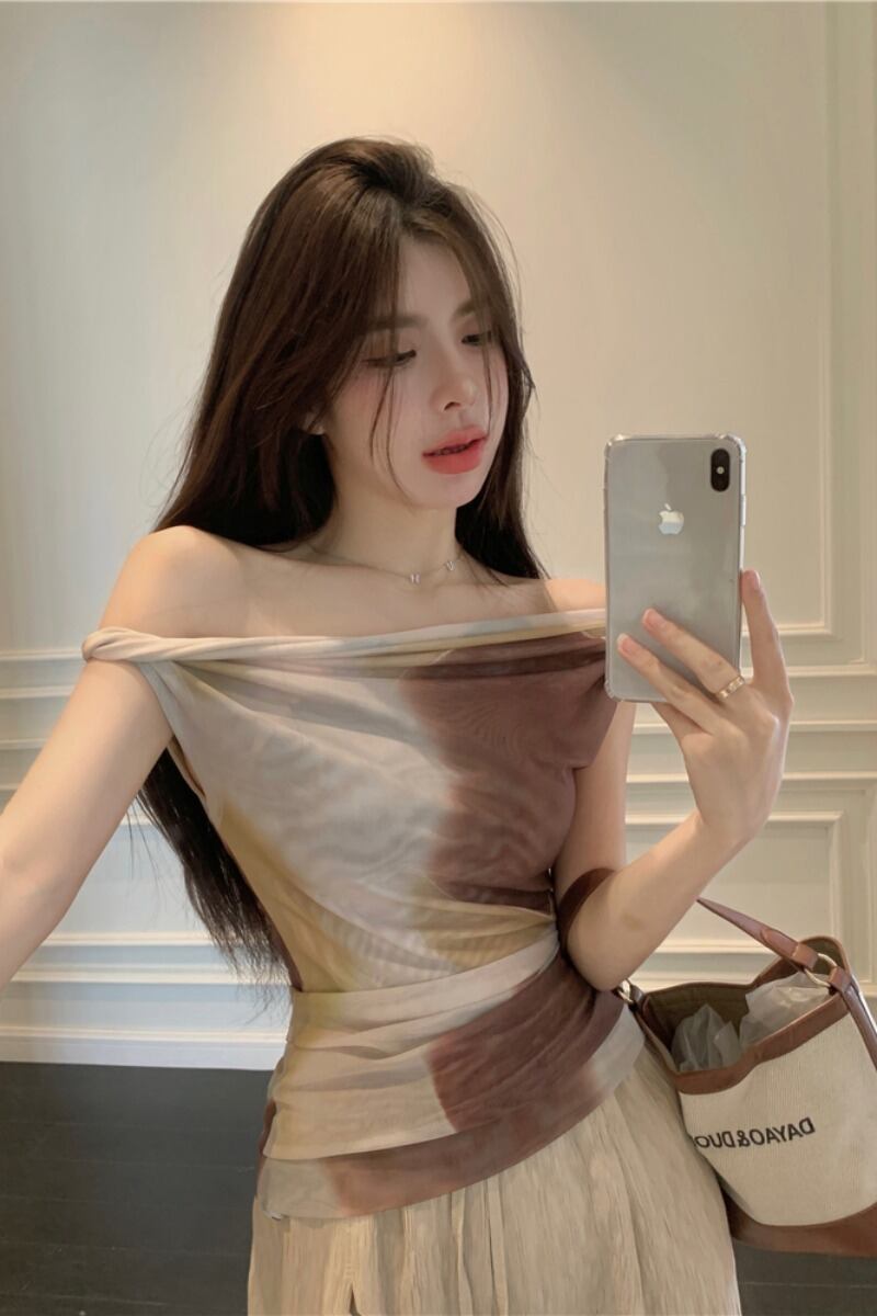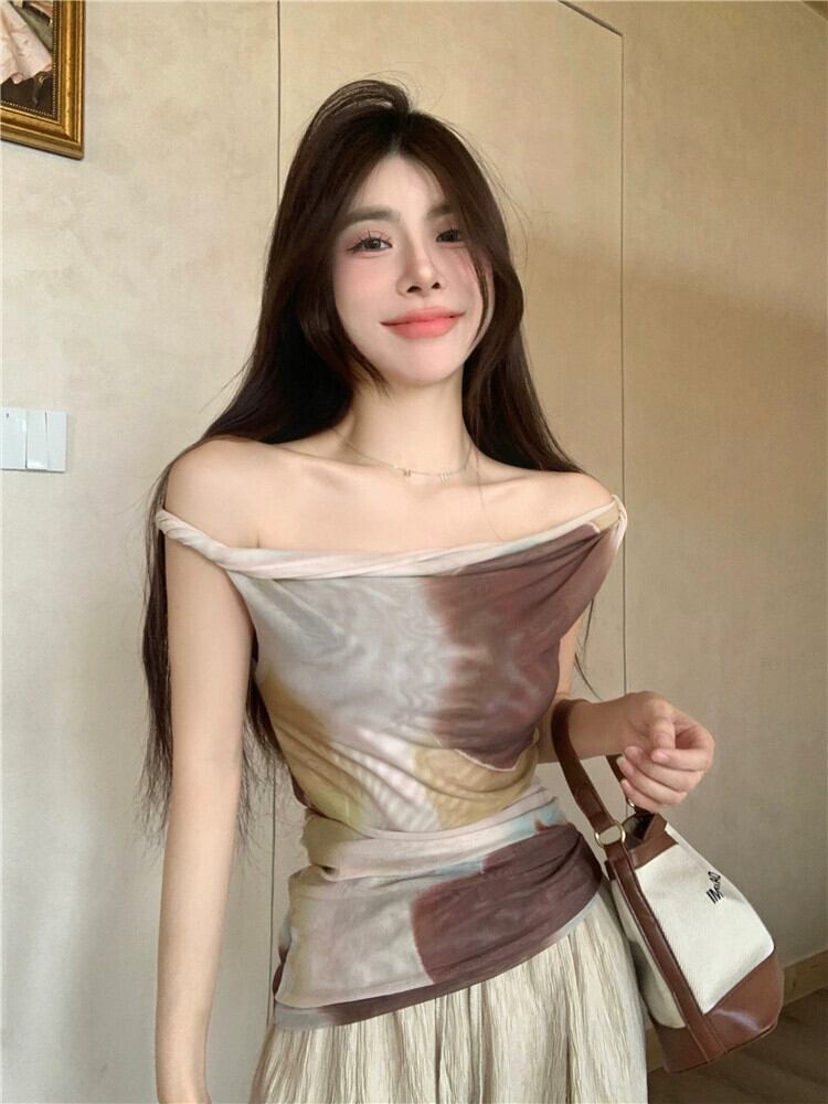 レトロ絞り染めデザインキャミソール婦人服2023年夏新作ニッチスリムスリムショートトップ サマー 夏物 0921948393598585