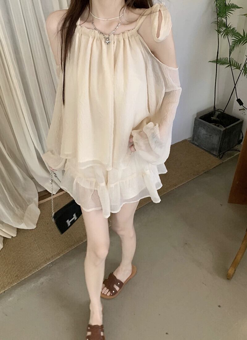Sweet Wind スーツ レディース 2023 夏新作 シフォン 長袖 オフショルダー トップス ウエストゴム 薄手スカート 2点セット ロング エラスティック 伸縮 大人ガーリー スウィート キュート カジュアル サマー 夏物 0921958724920521