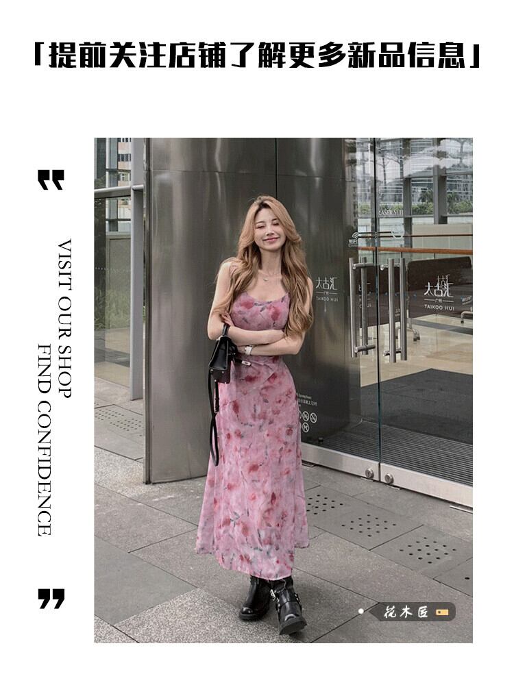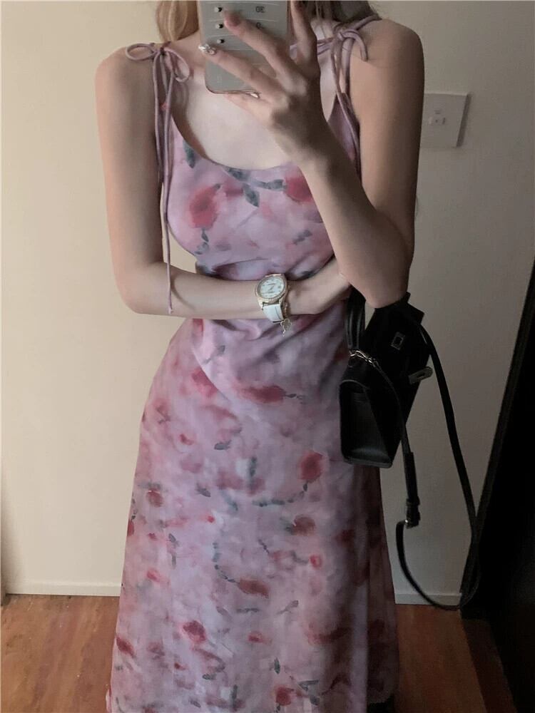 フレンチレトロニッチローズプリントスリングドレス女性の夏の2023新しい気質ウエスト痩身ドレス サマー 夏物 0921971031785353