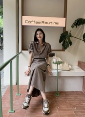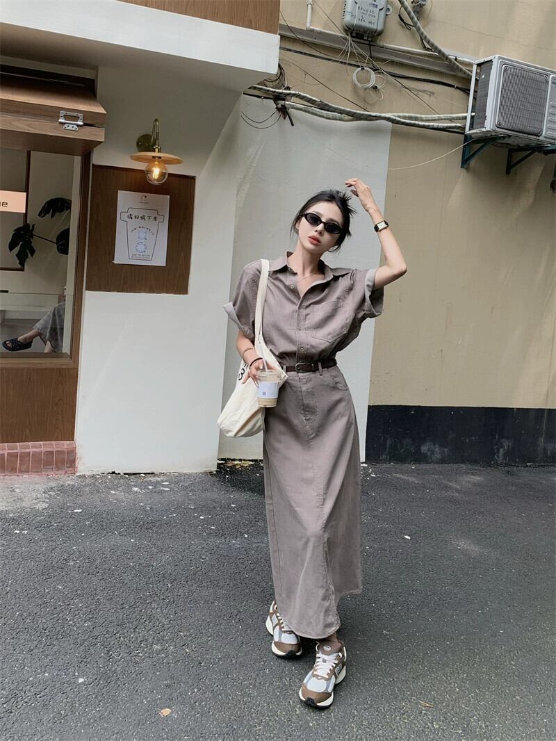 センスラペルシングルブレスト半袖ドレス女性の2023年夏新しい気質オールマッチaラインミドル丈スカート サマー 夏物 0921938045877999