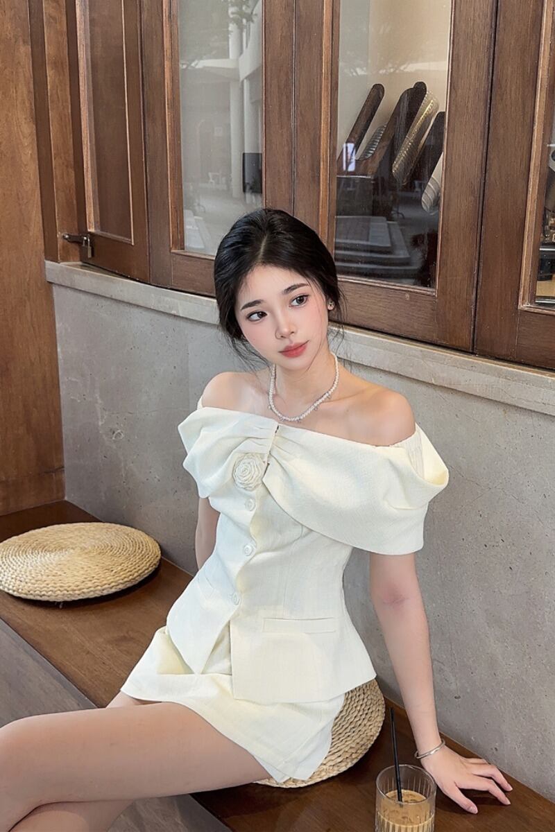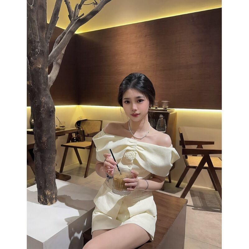 フレンチスタイルの高級スモールフレグランススーツ女性の2023年夏新しい気質一言襟トップショーツ2点セット サマー 夏物 ブルマー 092197905714723
