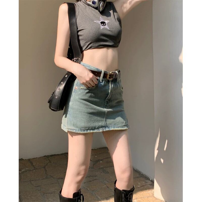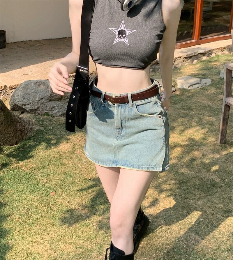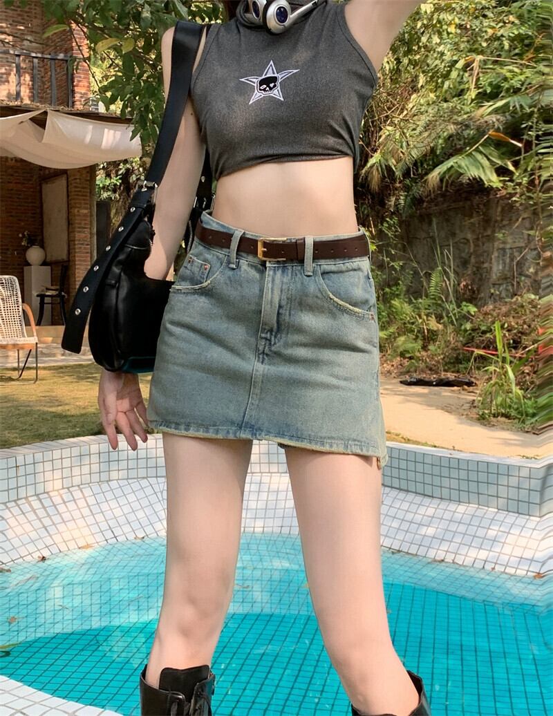 アメリカンレトロデニムスカート女性の夏のライトカラー防光スカートハイウエスト薄いスカートパッケージヒップスカートスカート ハイウェスト サマー 夏物 092196324041406