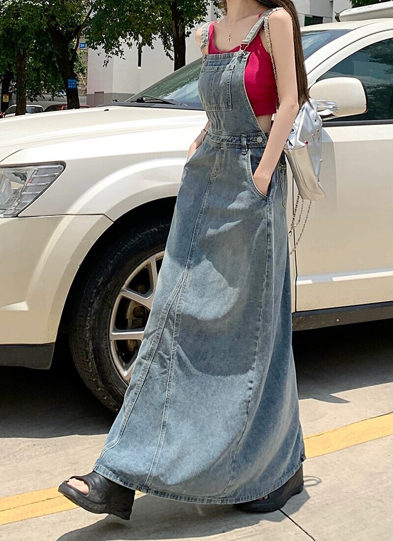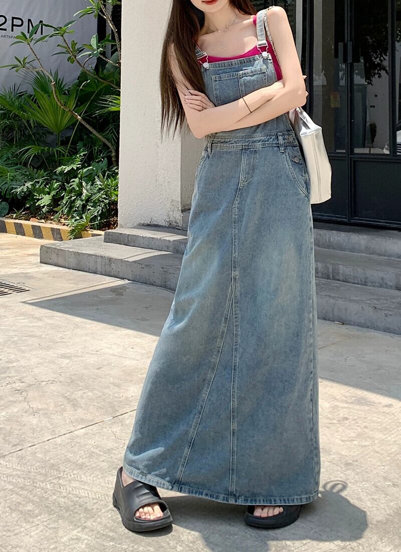 年齢を減らすバージョンのスリットデニムベストドレス女性の夏の2023新しいオールマッチ自己修養と薄いサスペンダードレス サマー 夏物 0921942560690552