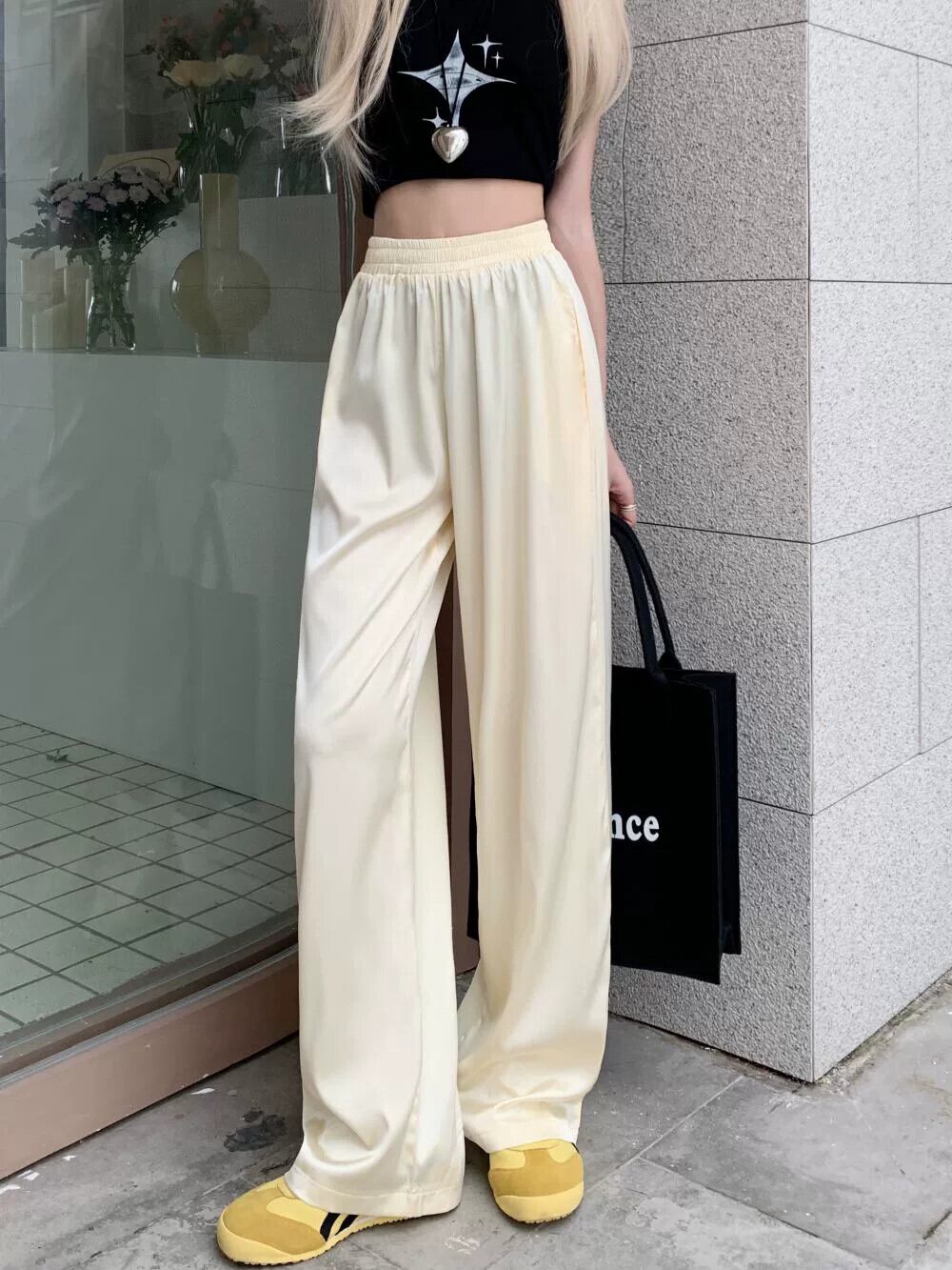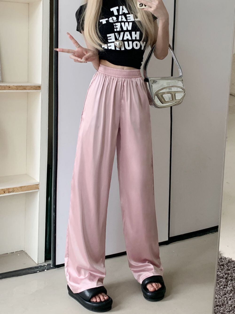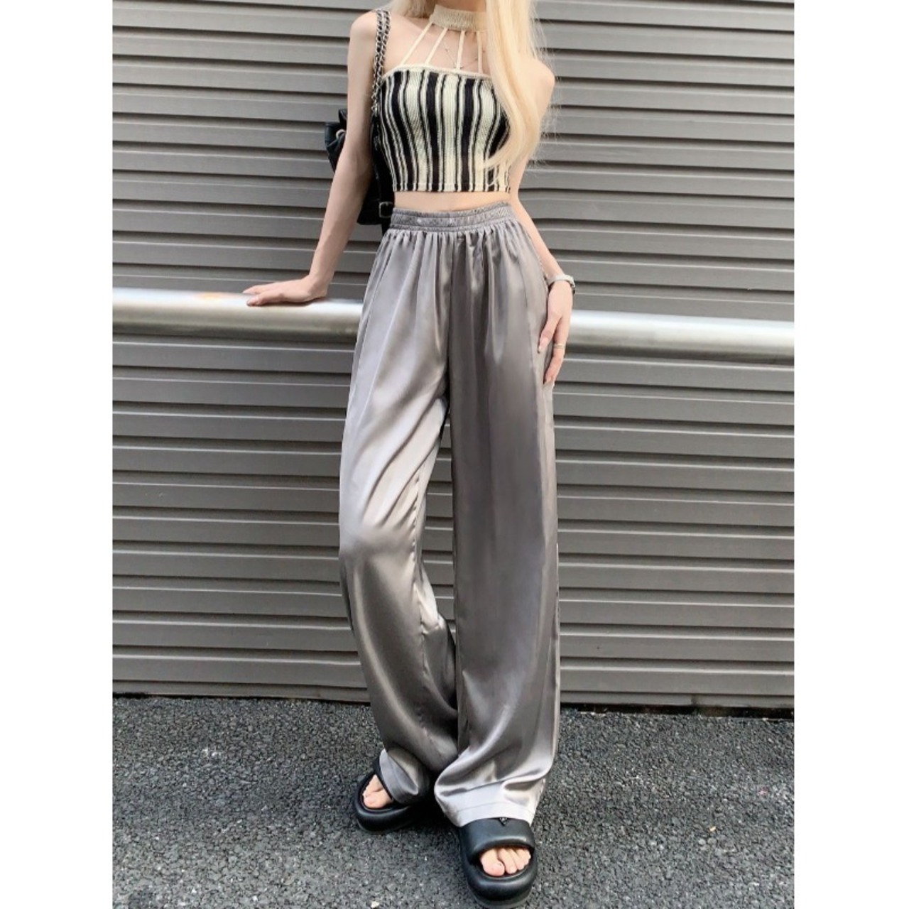 怠惰なスタイルの無地オールマッチカジュアルパンツレディース 2023 夏の新作ハイウエストルーズスリムワイドレッグロングパンツ ハイウェスト サマー 夏物 ソリッドカラー 092192725086279