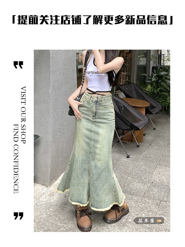 ローエッジレトロデニムスカート女性の夏の 2023 新しいデザインセンスニッチハイウエストフィッシュテールバッグヒップスカート ハイウェスト サマー 夏物 0921917289726673