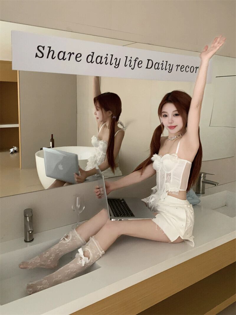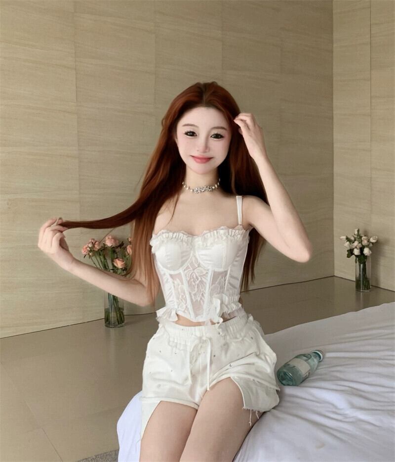 ホワイトレースフィッシュボーンコルセットウエストキャミソール女性の夏のセクシーなアウターウェア菌レーススリムフィットインナートップ サマー 夏物 0921940282695437