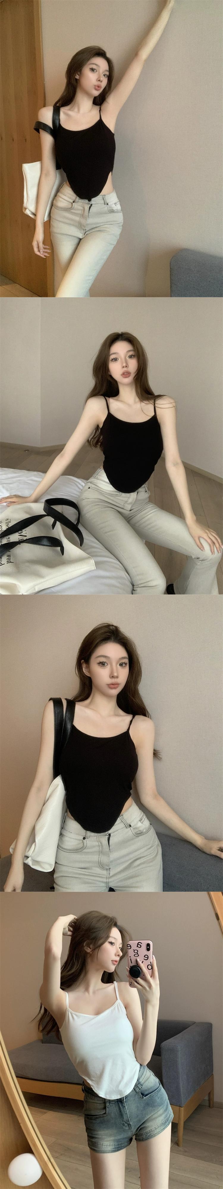 不規則胸パッド無地キャミソールレディース 2023 夏の新しいスタイルスリムスリムショートトップ サマー 夏物 ソリッドカラー 0921914918441082