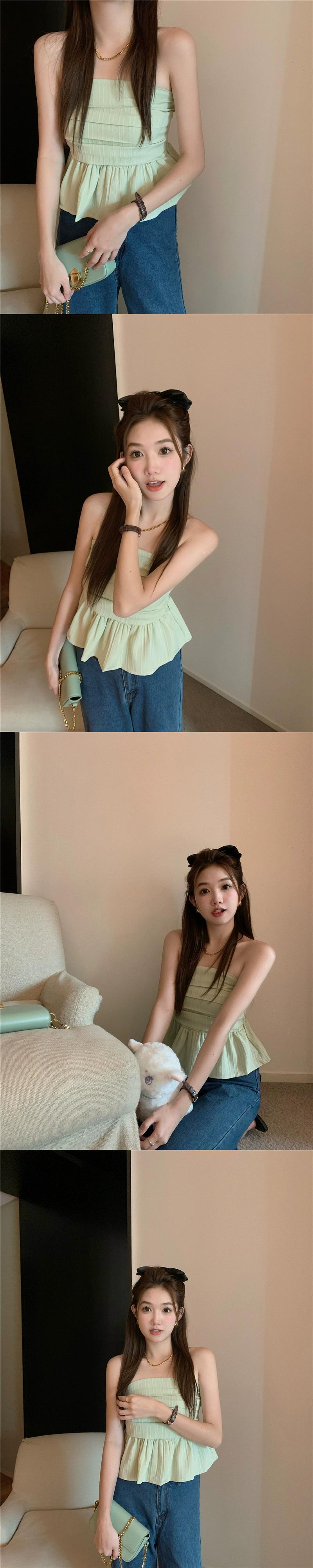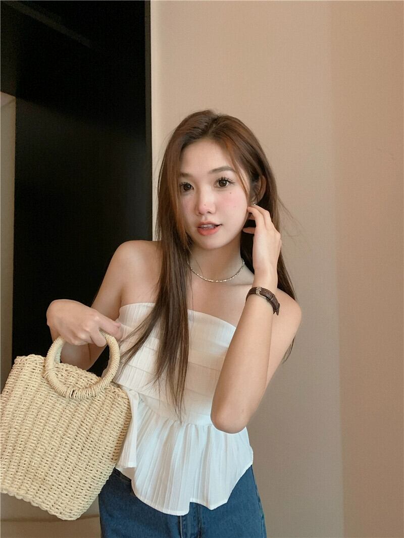 純粋な欲望風ウエストチューブトップ女性の夏のストラップレスのセクシーなフリルラップ胸アウターウェア甘い小さなベスト ラッフル 大人ガーリー スウィート キュート カジュアル サマー 夏物 0921994838165442