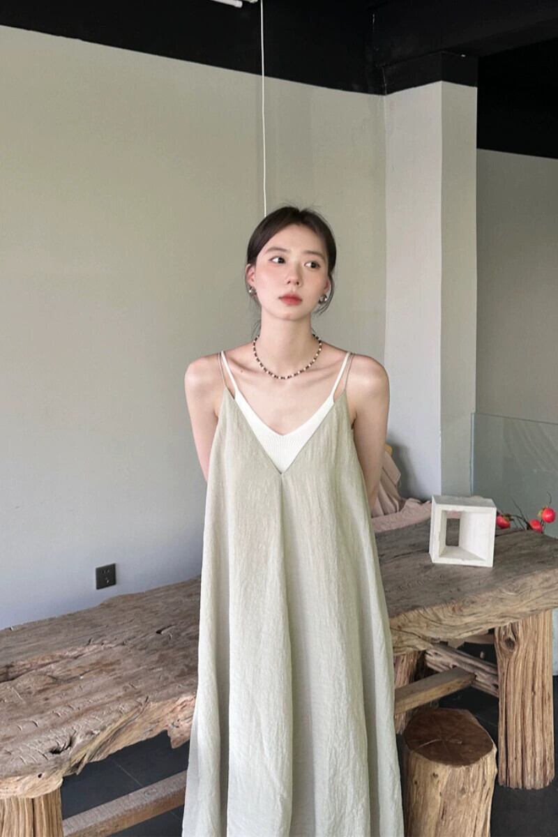 Romantic est ティーブレイク サスペンダー ドレス レディース 2023 夏の新しい優しいスタイルのスリム A ライン ドレス サマー 夏物 Aライン 0921963083246397