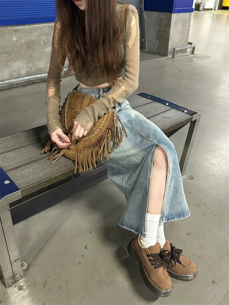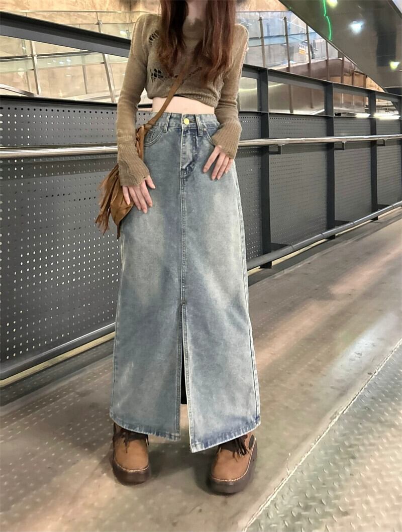 レトロスリットデニムスカートレディース 2023 夏の新作スカートデザインセンスニッチミッドレングスバッグヒップスカート サマー 夏物 0921950650582735