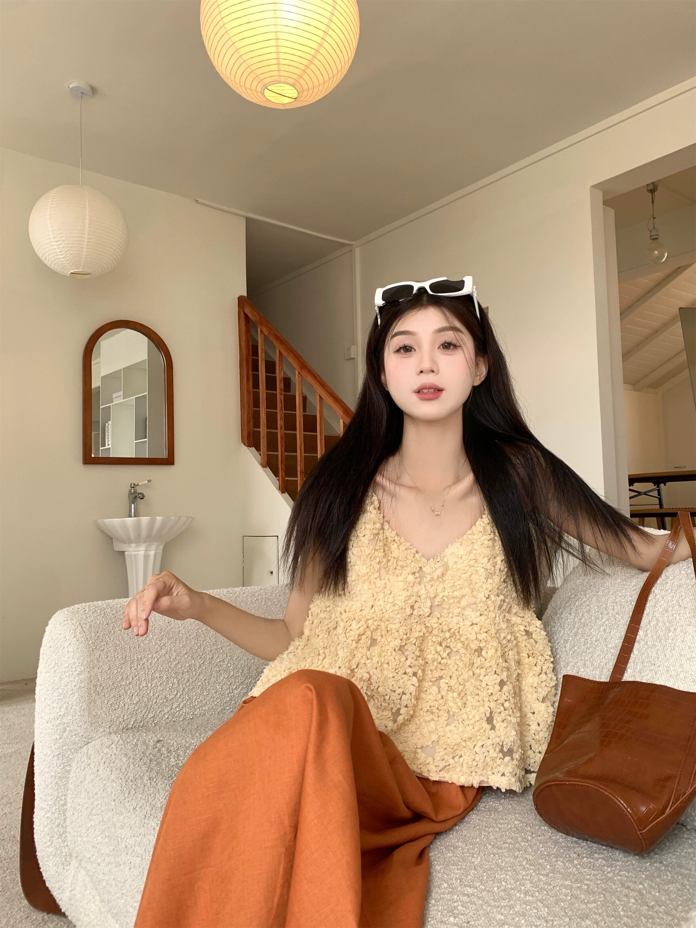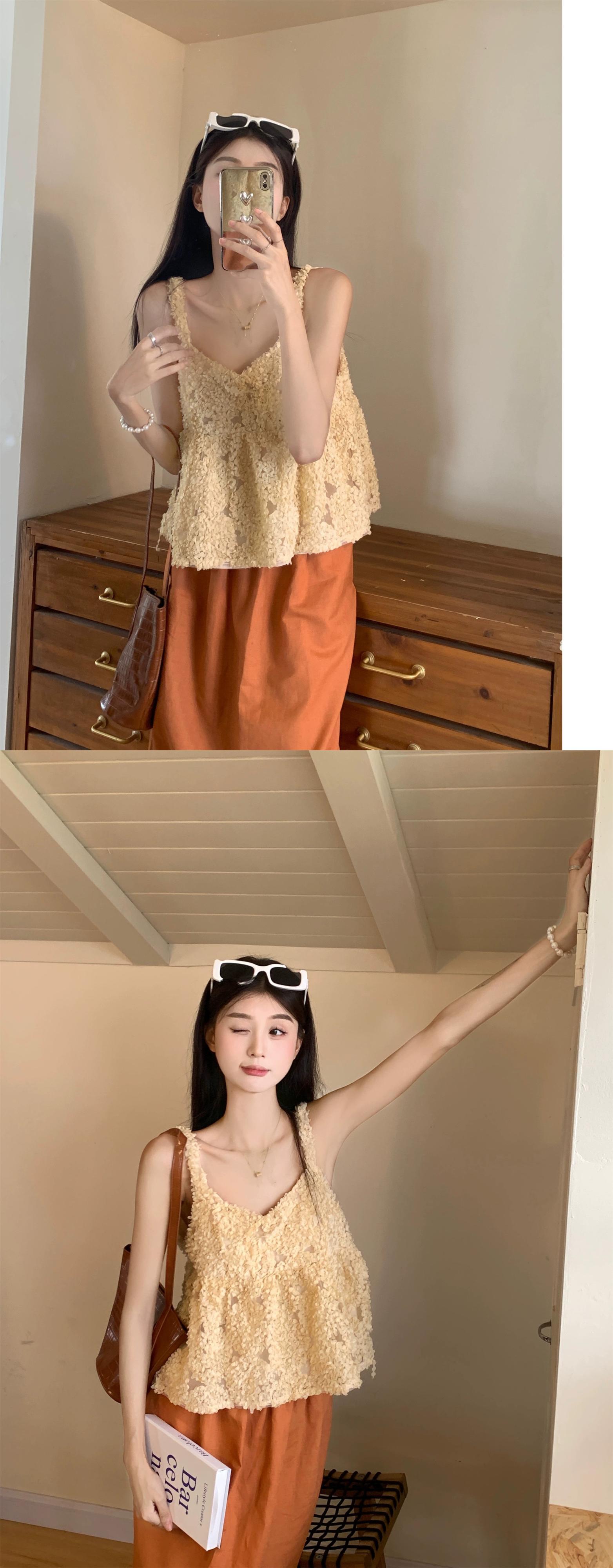 ファッションスーツ女性の夏 2023 新しいメッシュ立体花サスペンダーオールマッチルーズスカート 2 点セット サマー 夏物 フラワーデザイン 092195470111626