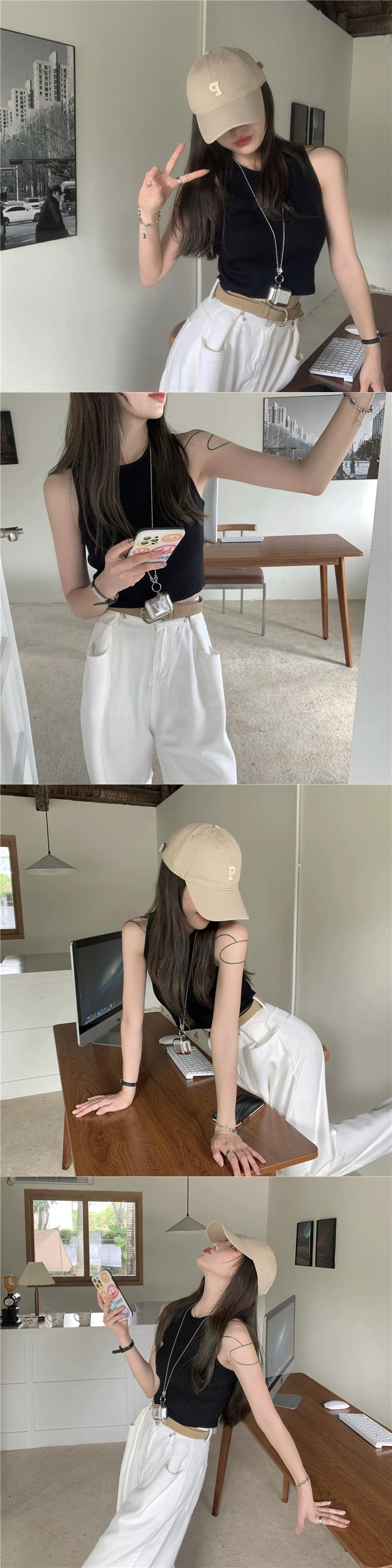 ブラックスポーツベストレディースサマーアウターショートセクション胸をカバーするノースリーブサスペンダーと甘いクロップトップ 大人ガーリー スウィート キュート カジュアル 夏物 0921959694359682