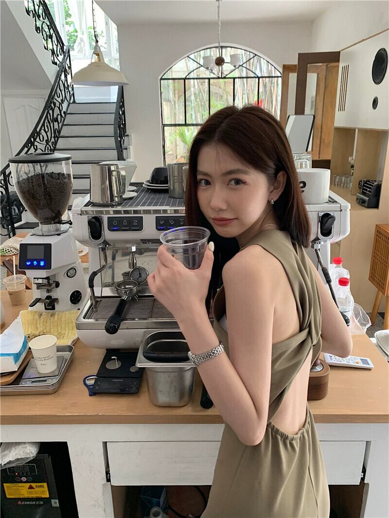 セクシーな背中の開いたハイエンドノースリーブベストドレス女性の夏のスリットスリムフィットバッグヒップロングスカート気質スカート サマー 夏物 0921950812457476