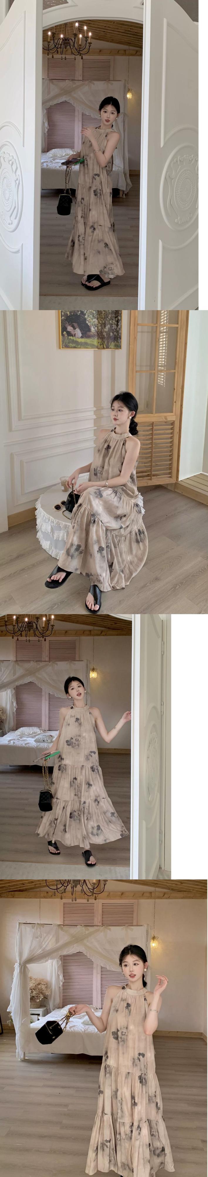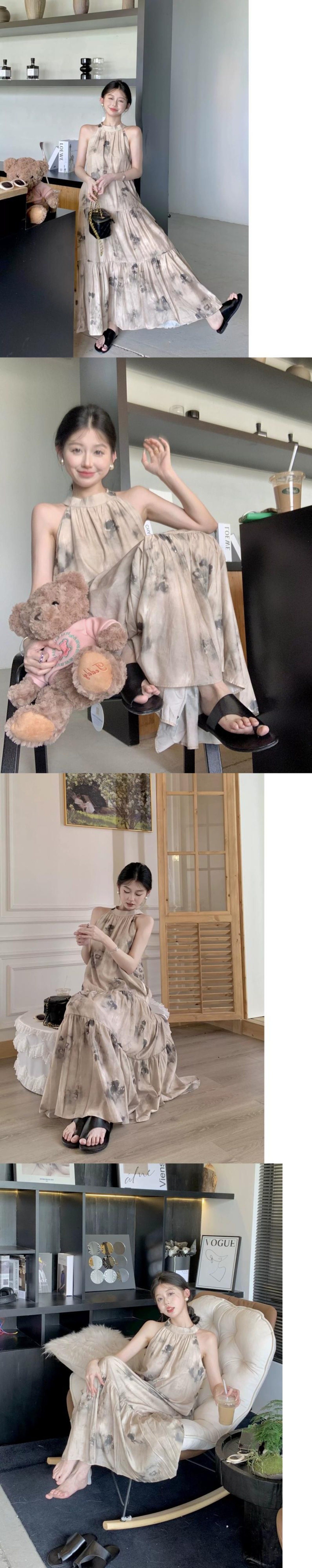 気質オフショルダーハンギングネックストラップドレスレディース2023年夏新デザインセンススリムスリムロングスカート潮 サマー 夏物 0921976068411479