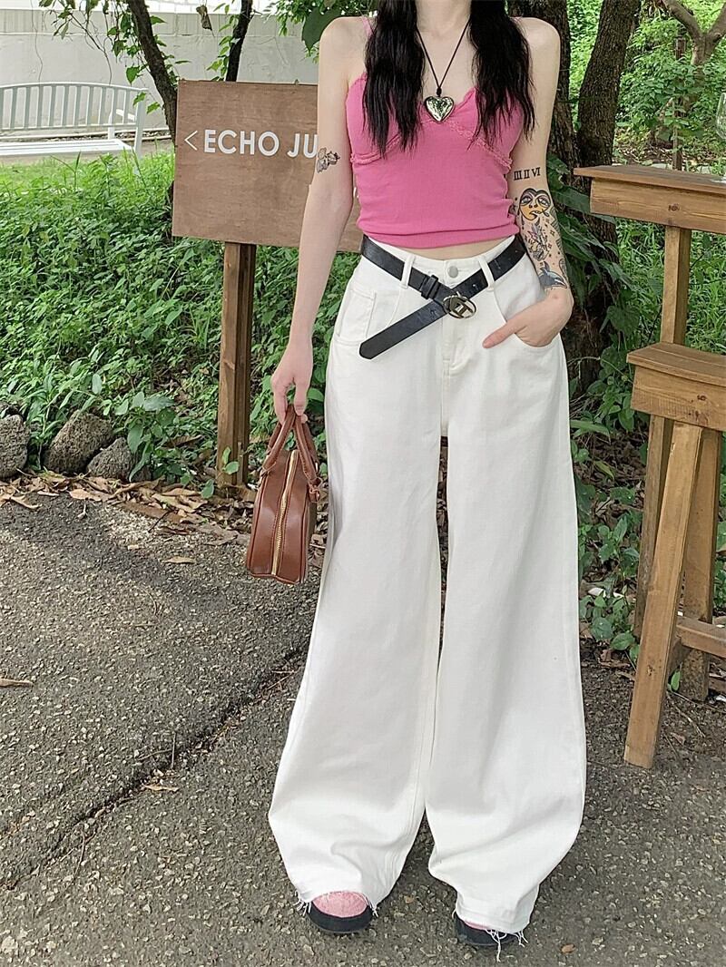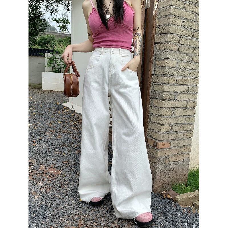 オールマッチホワイトハイウエストジーンズレディース2023年夏新作ルーズスリムストレートワイドレッグモップパンツ サマー 夏物 0921953720939236