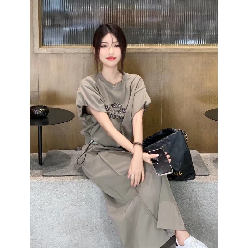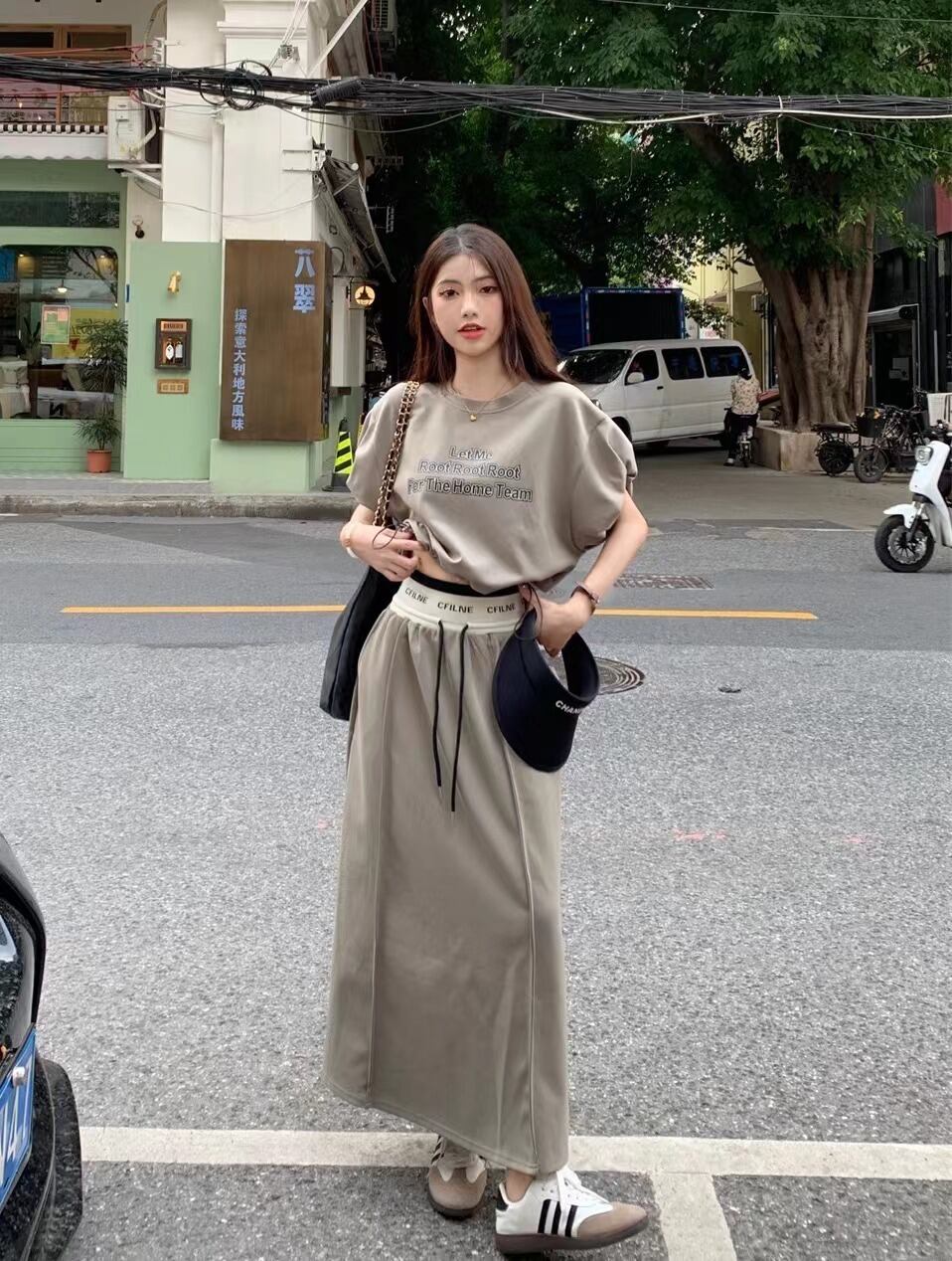 スタイルカジュアルスーツスカート女性の夏 2023 新しい巾着バブル半袖トップスリットスカート 2 点セット サマー 夏物 0921914939138765