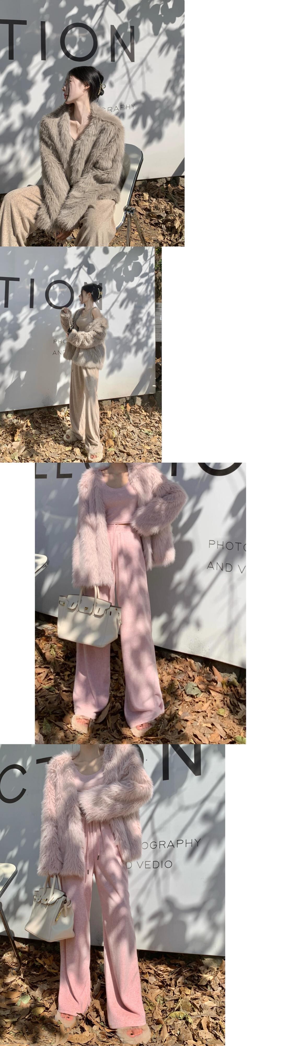 インターネットセレブファッションスーツレディース2023冬新作フェイクファーコートベストとワイドレッグパンツ2点セット ウィンター 冬物 0921919039576441