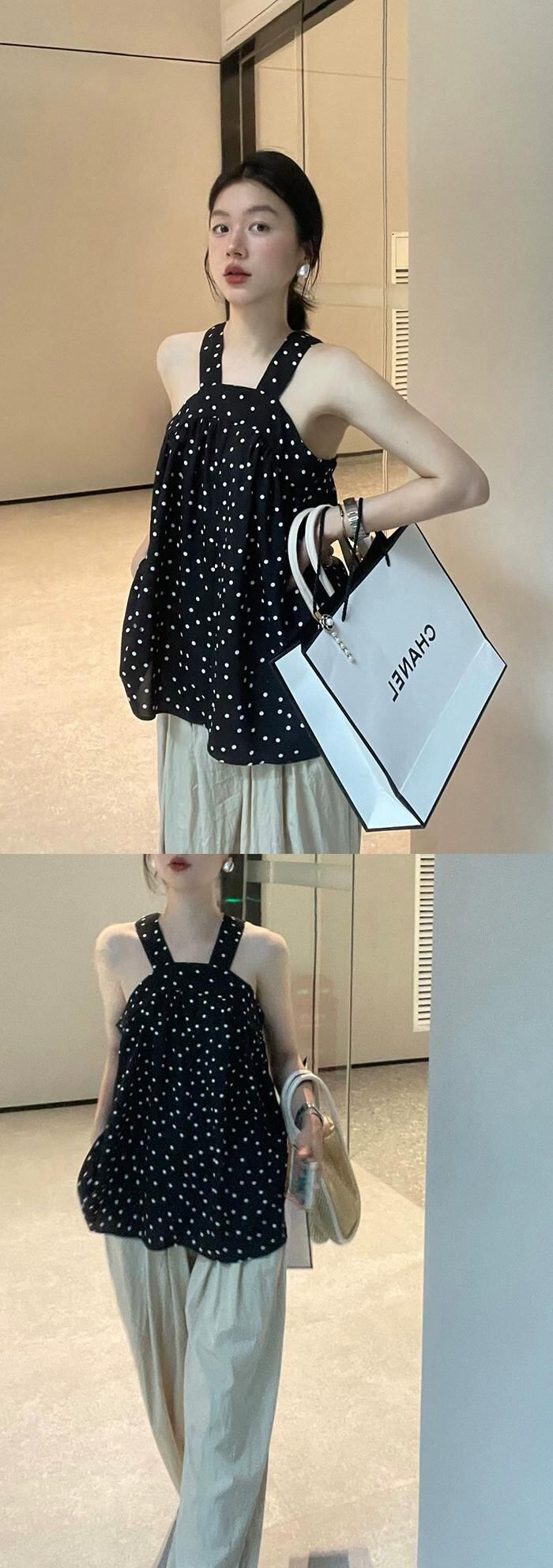 フレンチシックなウェーブポイント吊りネックシフォンキャミソールレディース夏デザインセンスニッチ気質ノースリーブアウタートップ サマー 夏物 0921928651814804