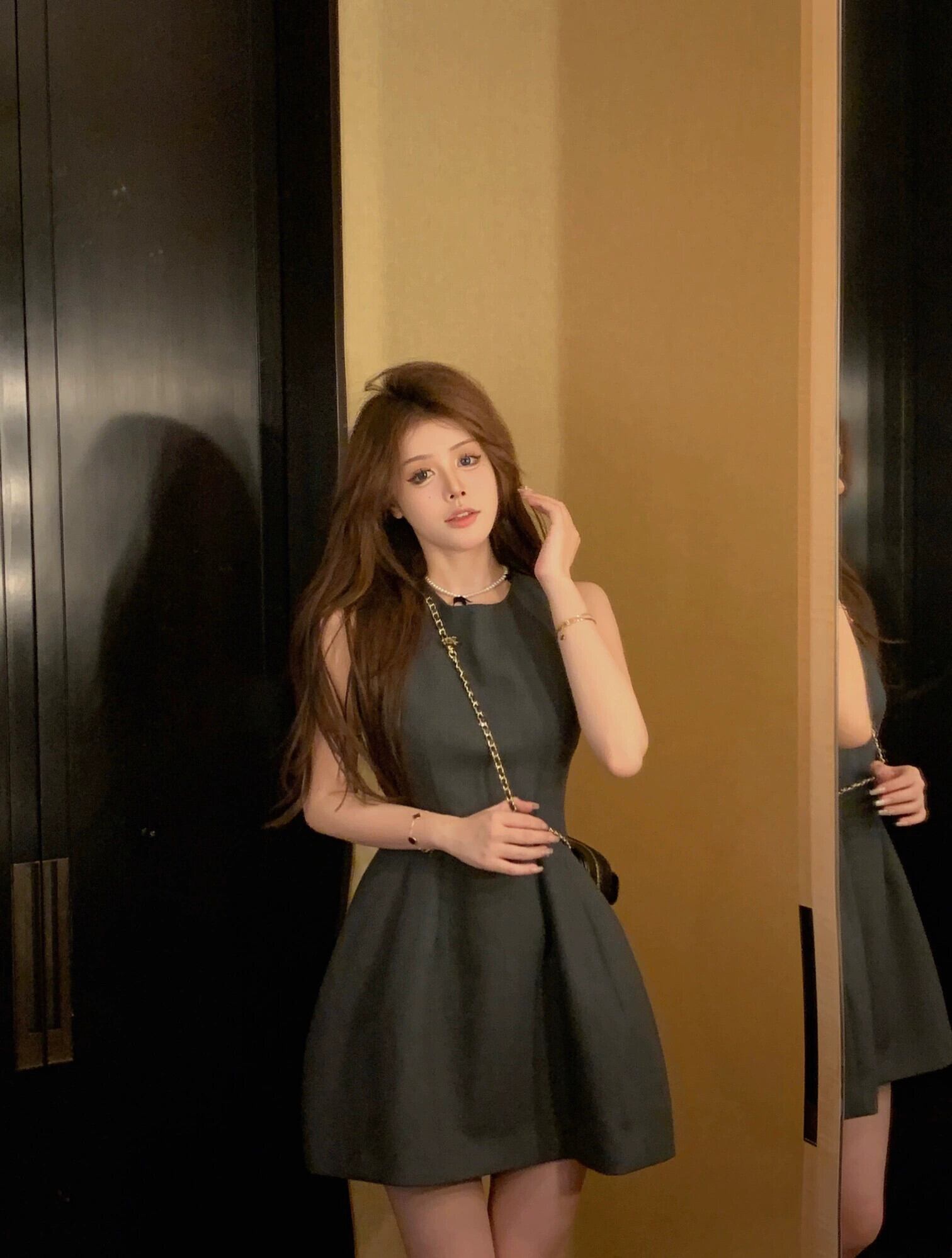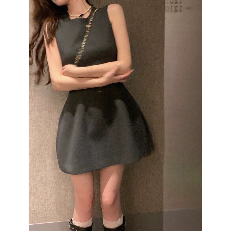 フレンチラウンドネックノースリーブベストドレス女性の夏の甘いショートスカート小さなウエスト痩身aラインスカート 大人ガーリー スウィート キュート カジュアル サマー 夏物 Oネック 0921985992085176
