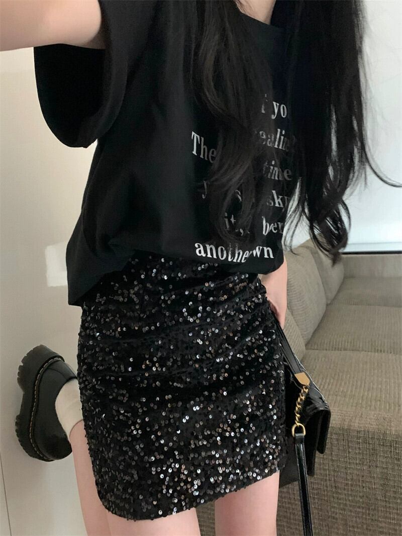 ホットガールウエストスリムスパンコールスカート女性の夏 2023 セクシーな気質多用途ショート A ラインスカート サマー 夏物 Aライン 092199217296668