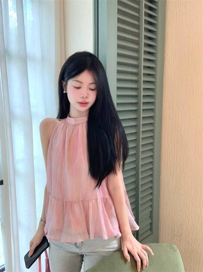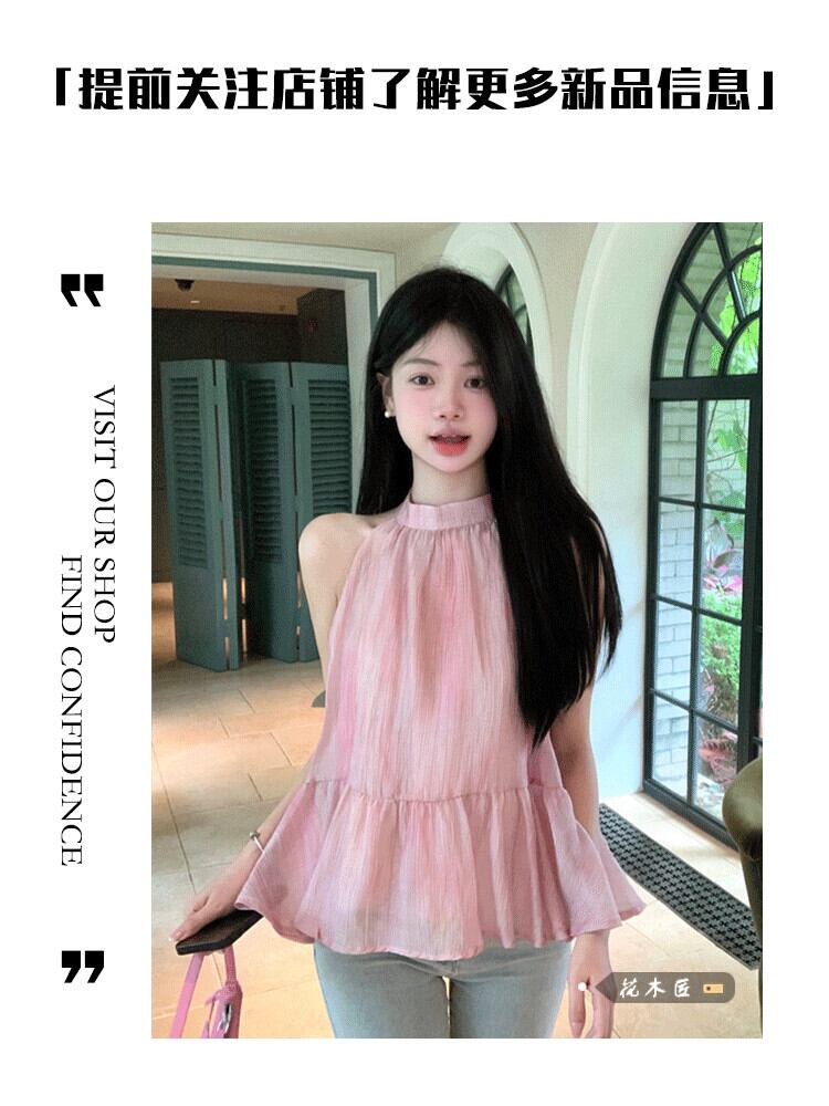 スイートホットガールピンクタイダイホルターキャミソール女性の夏ノースリーブオフショルダーシックなトップリトルピープル 大人ガーリー スウィート キュート カジュアル サマー 夏物 0921912007308764
