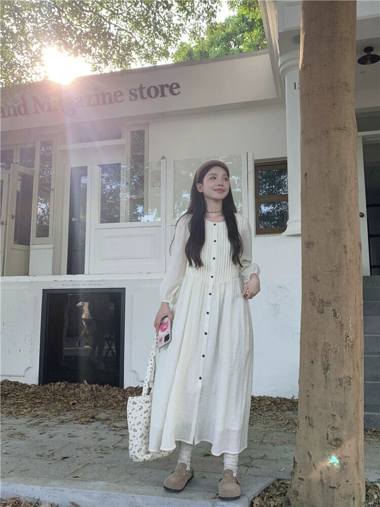 優しいスタイルプリーツ長袖ドレス女性秋 2023 新デザインルーズ a ライン痩身ロングスカート オータム 秋物 Aライン 0921970206923848