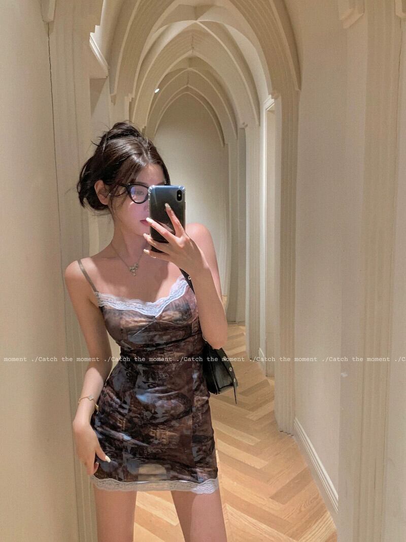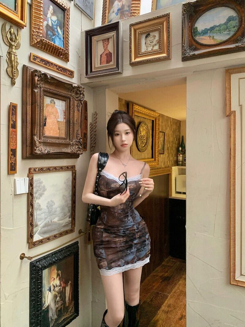 レトロネクタイレースサスペンダードレス女性の夏 2023 新しいセクシーなスリムフィットボトムヒップスカート サマー 夏物 0921914854632235
