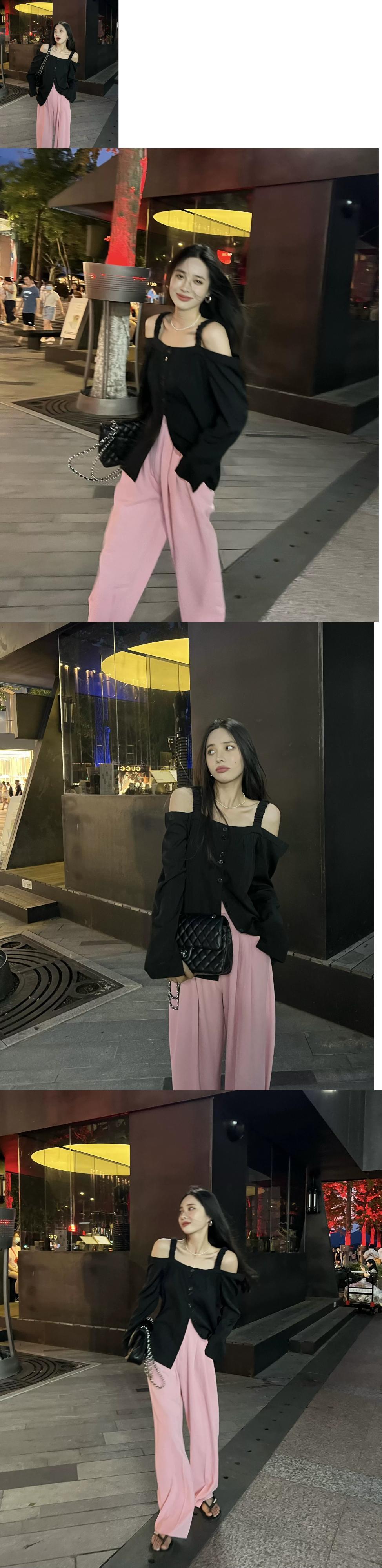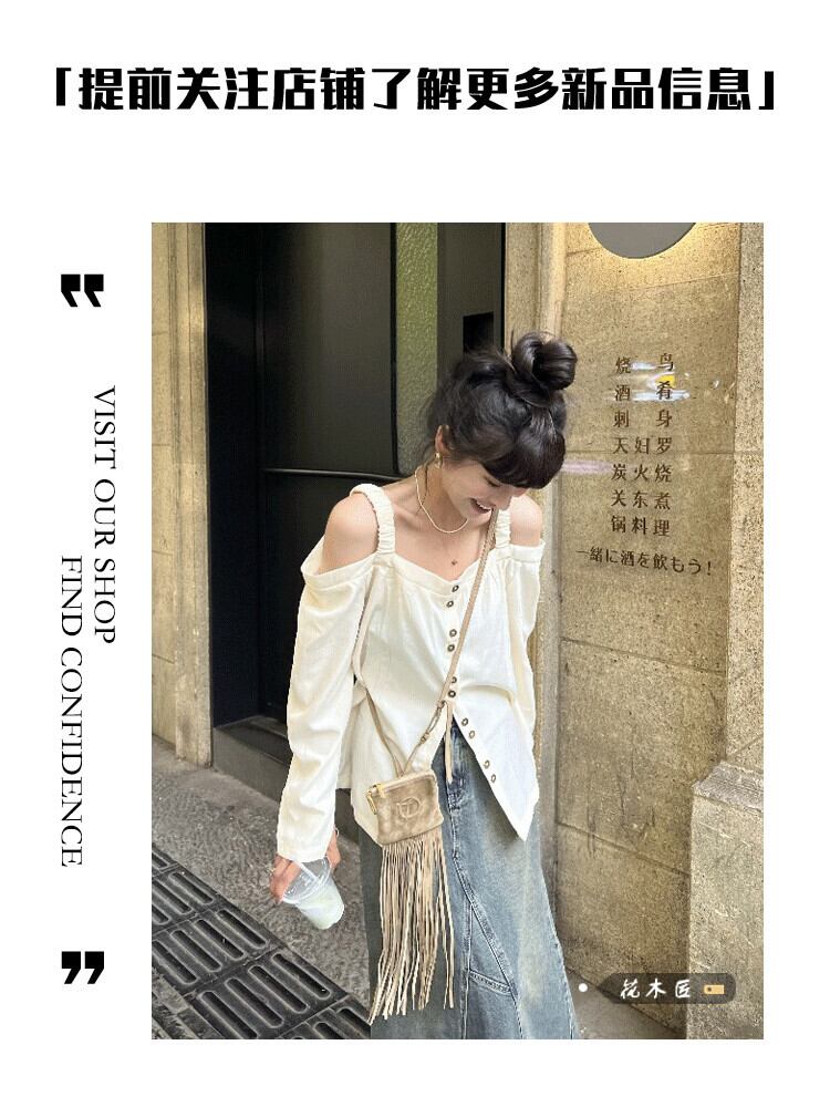 ED ワンラインカラーオフショルダー長袖シャツレディース 2023 夏の新作多用途ルーズスリムアウターシャツ ロング サマー 夏物 092198374351178
