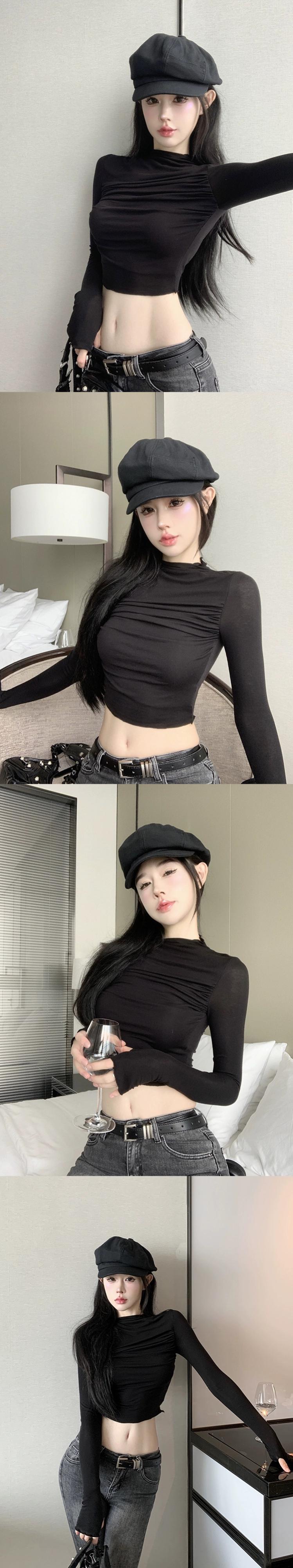 純粋な欲望スタイルハーフタートルネック長袖 Tシャツ女性初秋 2023 新しいスタイルの気質ショートスリムフィットトップイン ロング オータム 秋物 0921994931756908