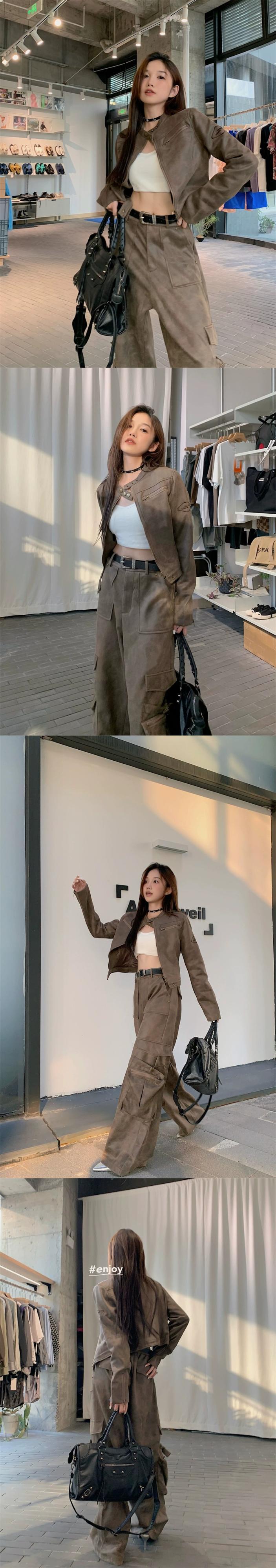 アメリカンレトロファッションツーピースセット女性秋 2023 新スタイルストリート長袖ジャケット作業服カジュアルパンツスーツ ロング オータム 秋物 092197932458169