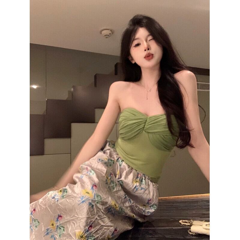 フランスのハイエンドファッションスーツの女性の夏 2023 新しいセクシーなチューブトップベストプリントスカート 2 点セット サマー 夏物 0921917071834652