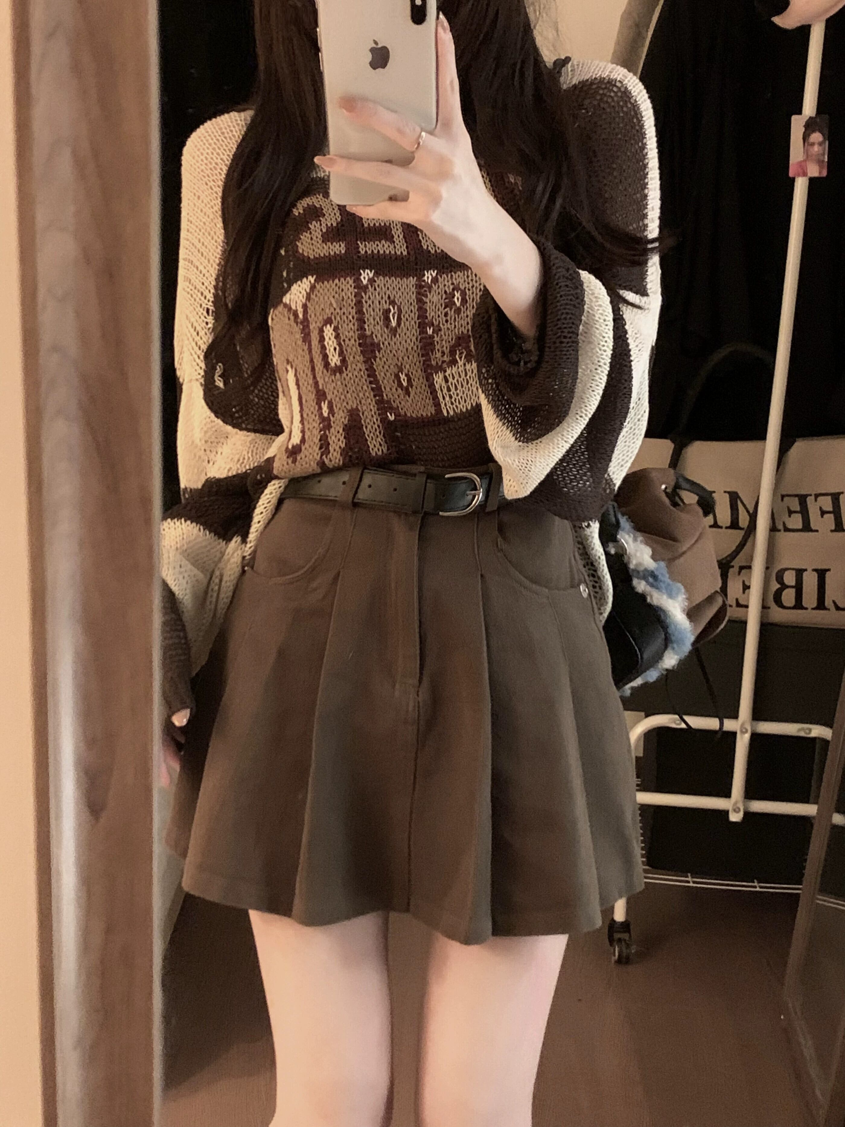 バージョン無地多用途ハイウエストスカート女性の夏 2023 新年齢削減と痩身 A ラインプリーツショートキュロット サマー 夏物 Aライン ソリッドカラー 0921959037078946