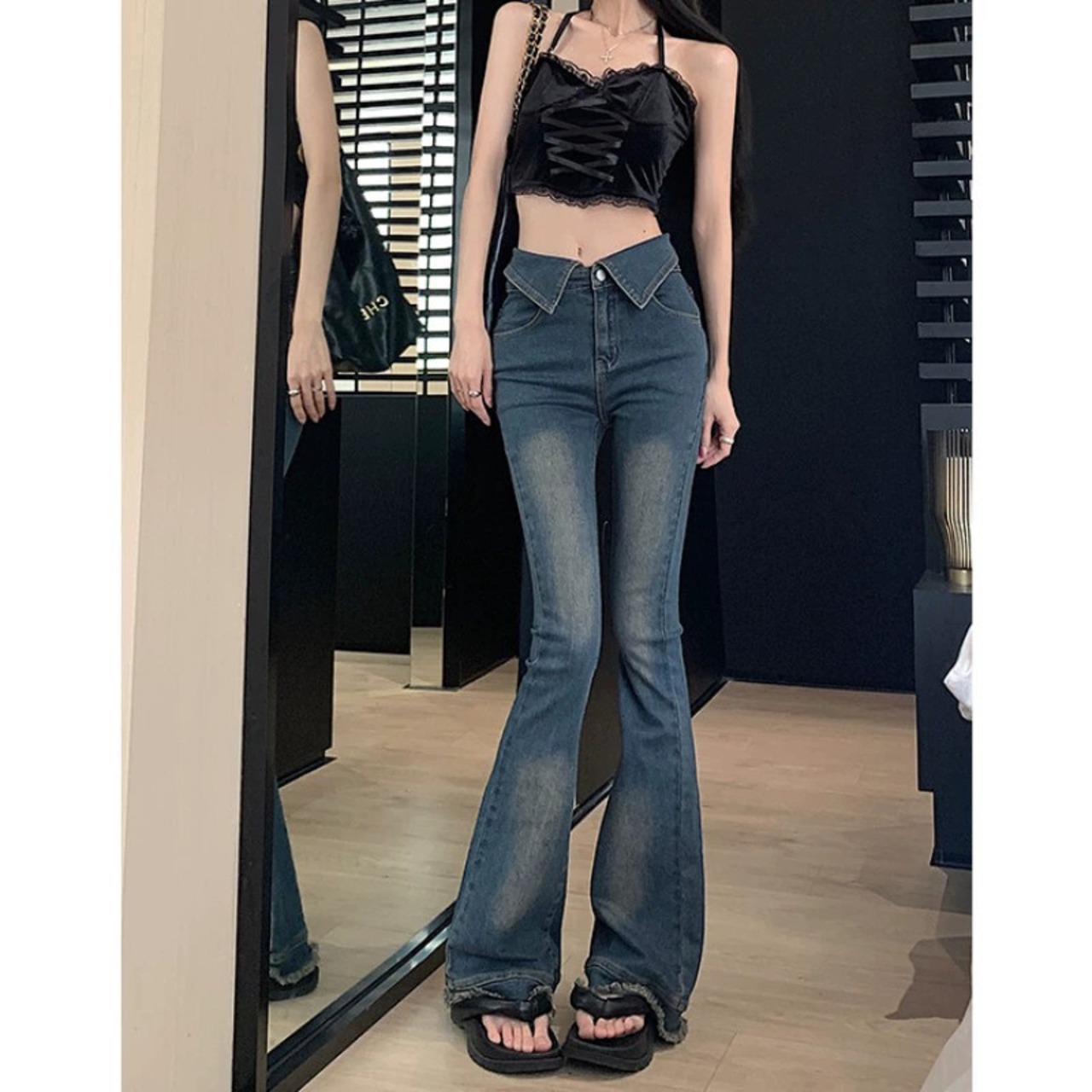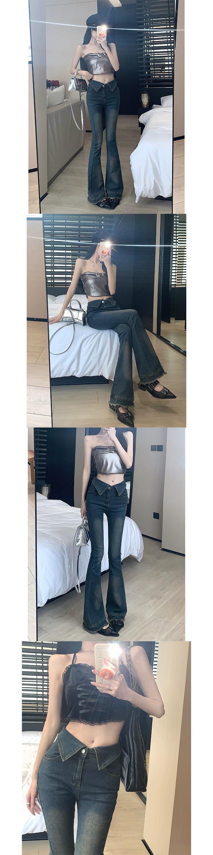 レトロな人格スタイルのジーンズの女性の夏 2023 新デザイン袖口ハイウエストスリムフィットパンツ ハイウェスト サマー 夏物 0921959290103592