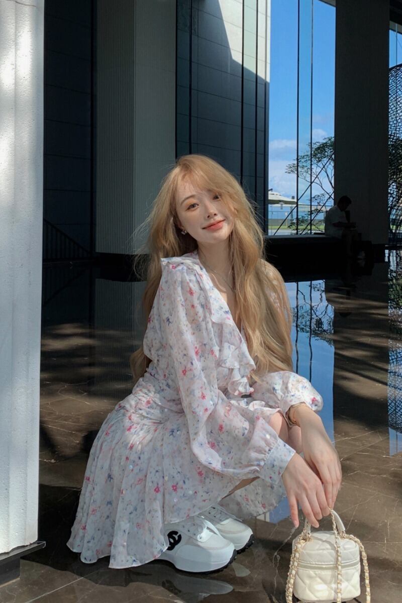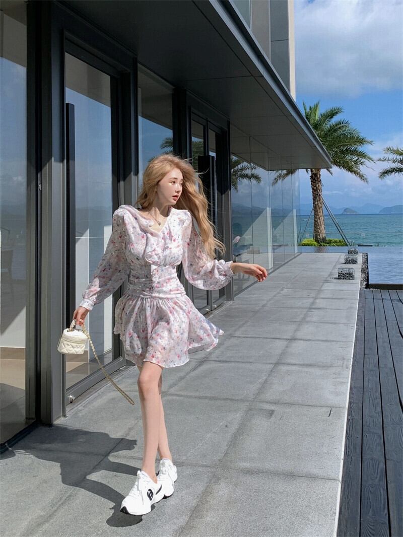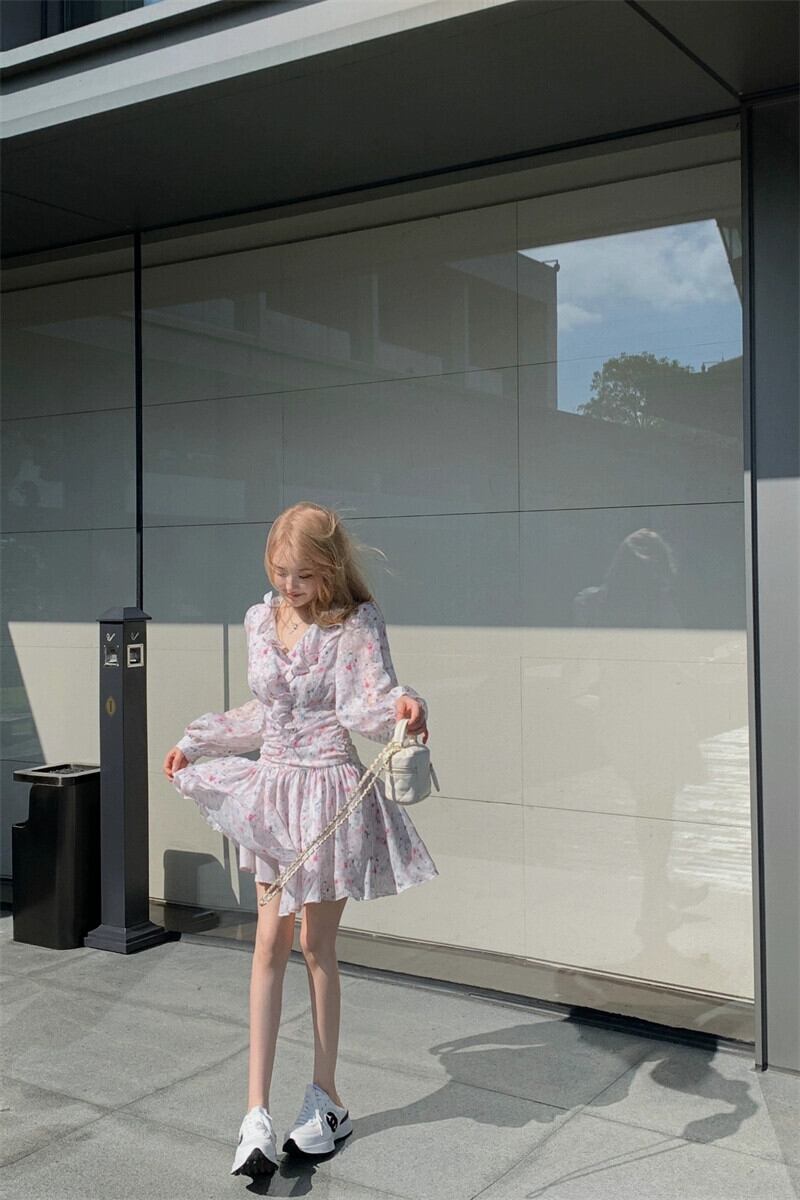 フレンチスイートスタイル花柄長袖ドレス女性初秋2023新しいスタイルフリルプリーツウエストaラインスカート ロング 大人ガーリー スウィート キュート カジュアル オータム 秋物 0921942231212799