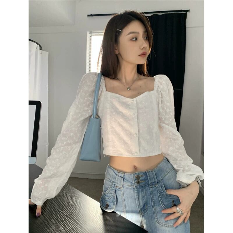 気質刺繍長袖シャツ女性の初秋 2023 新しい多用途ショートスタイル痩身日焼け防止シャツ ロング レッド オータム 秋物 0921966076718427